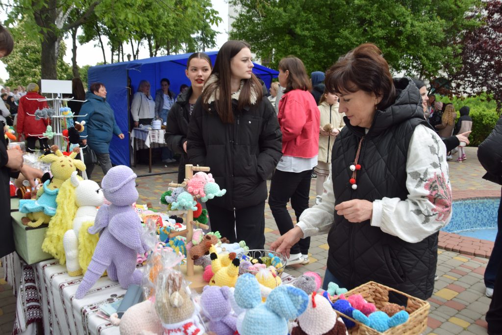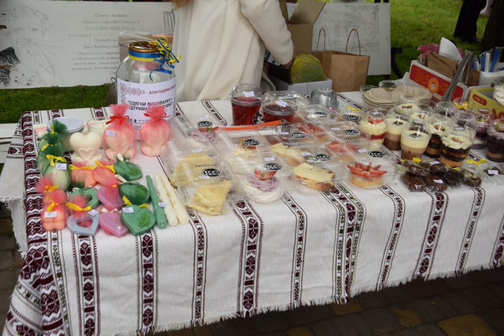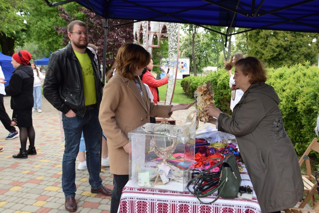 – Тут у нас вінки не тільки з соломи, а й з кукурудзяного листя, бутоньєрки з квітами й колосками. Радісно бачити, що діти долучаються, цікавляться, створюють – значить, понесуть традиції в майбутнє. Всі донати з нашого стенду спрямуємо на підтримку команди «Нескорені».
