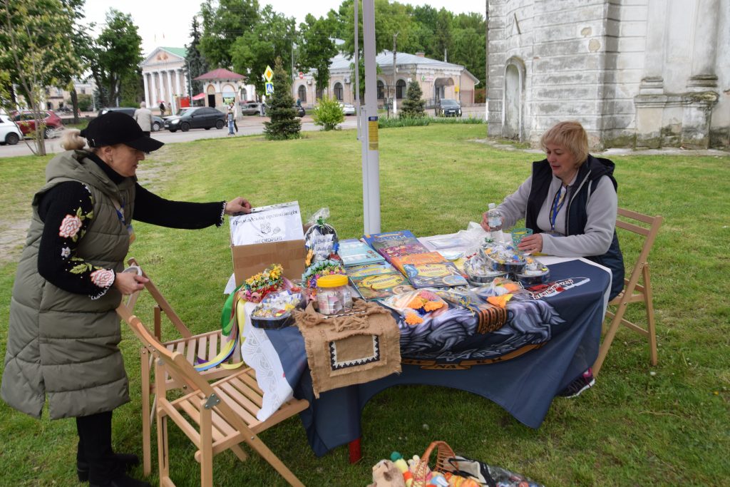 А тим часом діяли різноманітні майстер-класи: виготовлення браслетів, патріотичних листівок, соломкоплетіння, лозоплетіння від Переяславської художньої школи імені Петра Холодного. Керівниця гуртка «Дизайн композиції» БХТДЮМ Тетяна Буторіна представила віночки та вироби з природних матеріалів:
