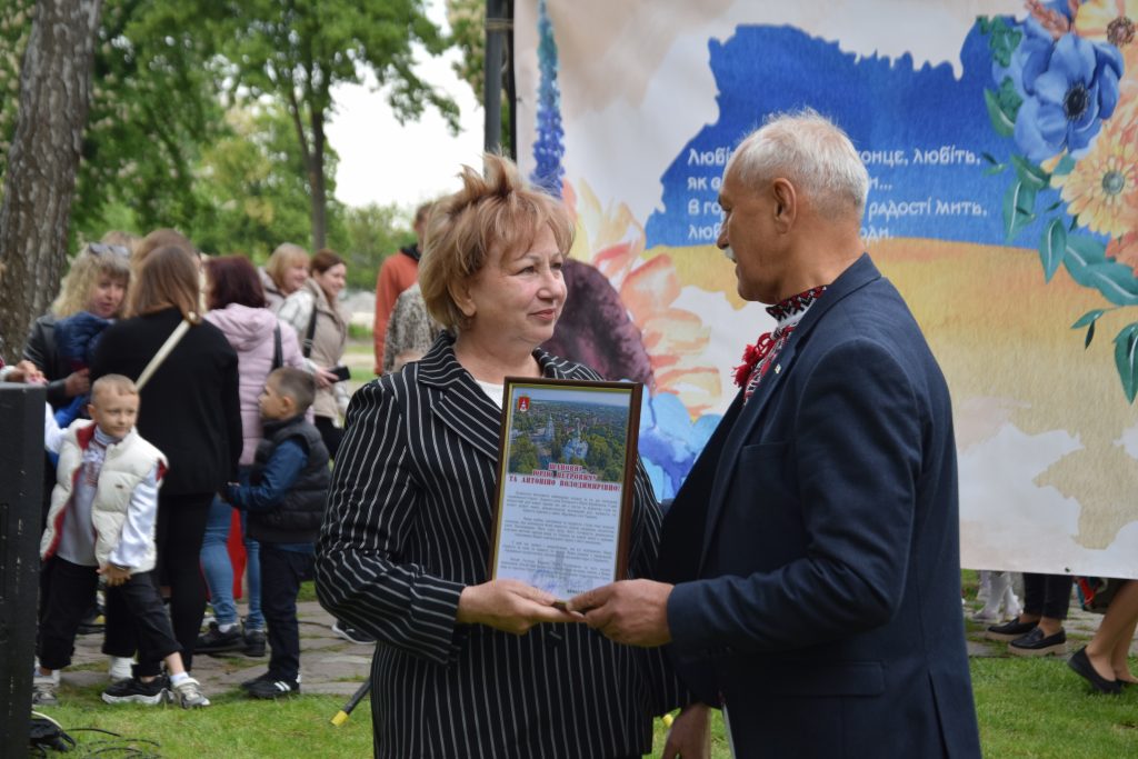 На сцену запросили батьків воїна 67-ї механізованої бригади, переяславця Юрія Білецького – Юрія Петровича та Антоніну Володимирівну. За клопотанням командира бригади міський голова вручив їм подяку за виховання справжнього патріота.