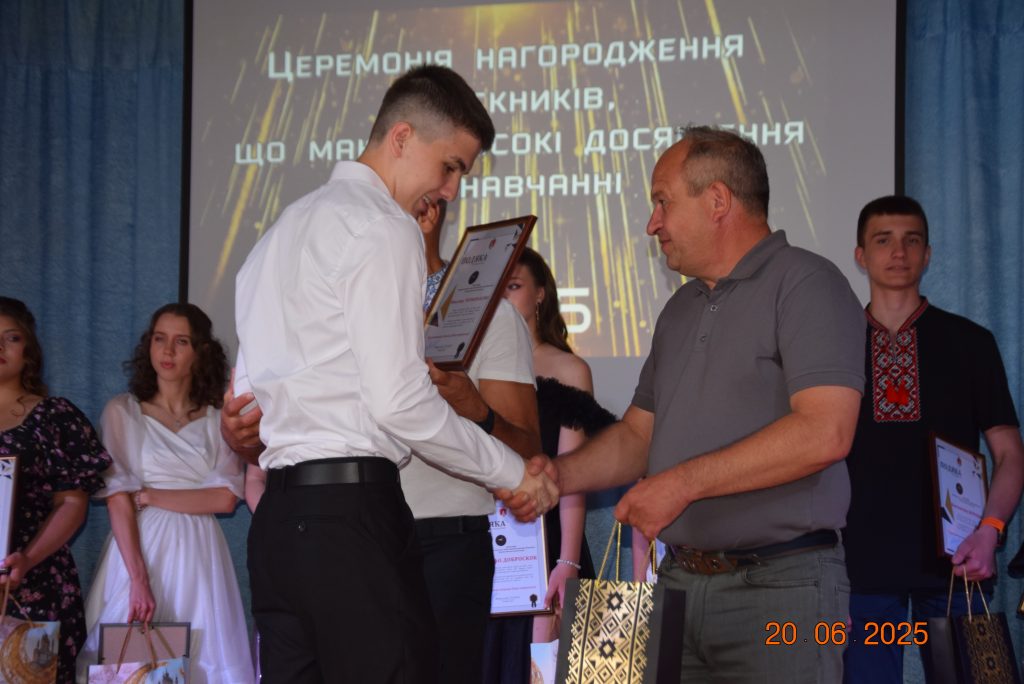 Відразу потому Вячеслав Володимирович разом із Петром Миколайовичем талановитій молоді нашої громади (23 учні) вручили Подяки та пам’ятні подарунки на згадку про сьогоднішній день.