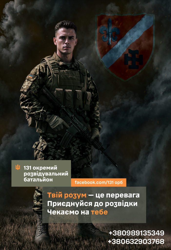 Твій розум – це перевага. Приєднуйся до 131 окремого розвідувального батальйону 24.06.2025 by Адмін in Новини · 0 Коментарів