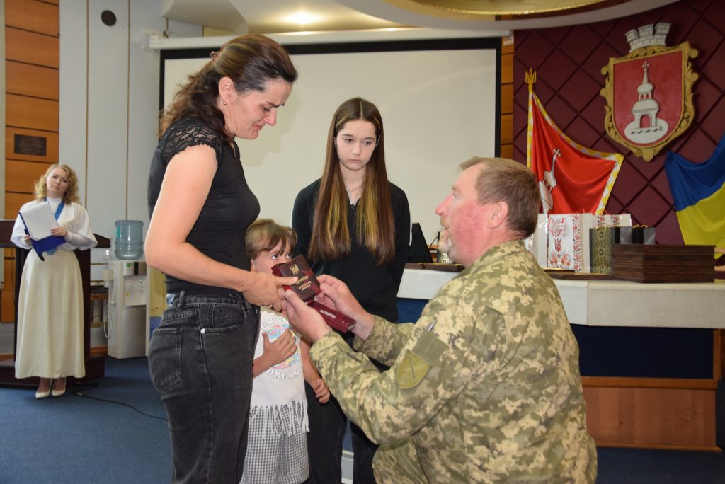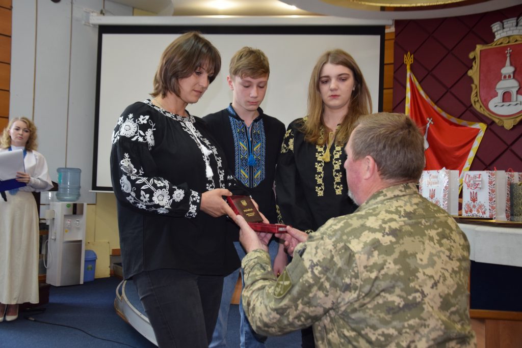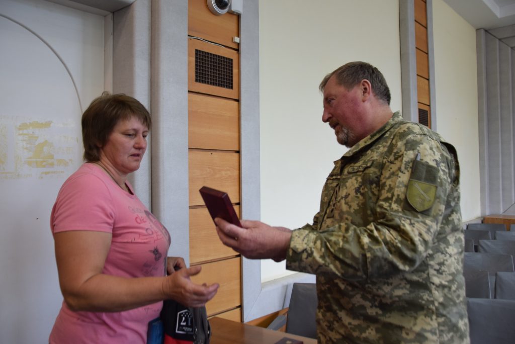 Відзнаки рідним наших захисників вручав офіцер І відділу Бориспільського РТЦК та СП Андрій Шаповал.