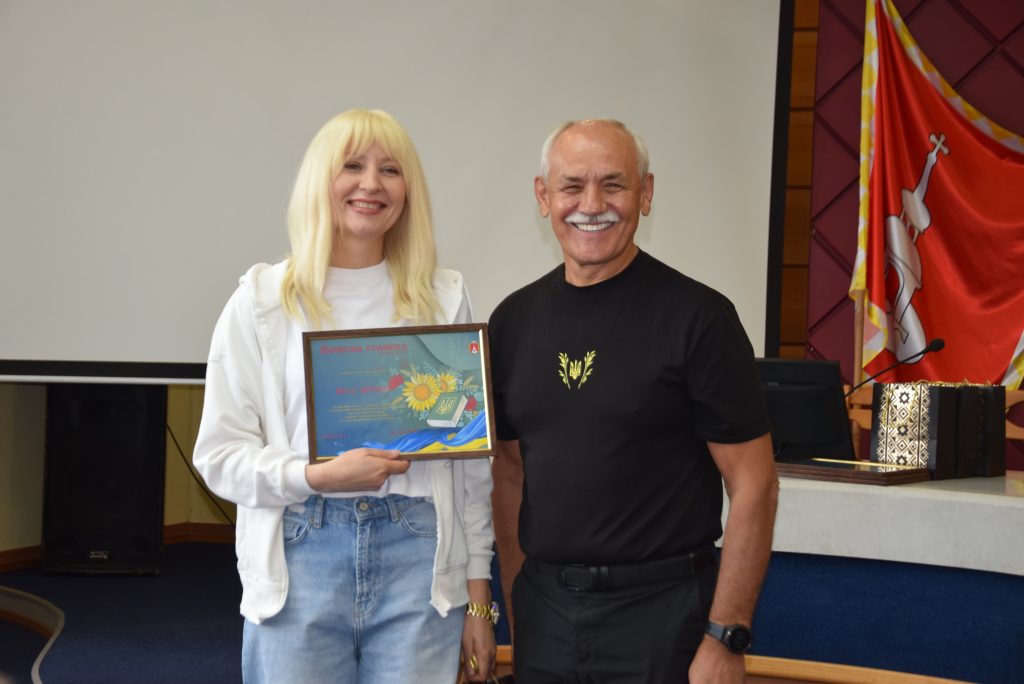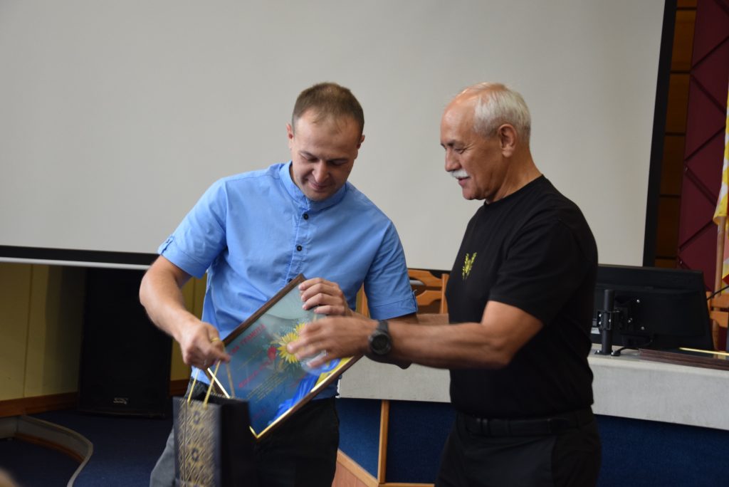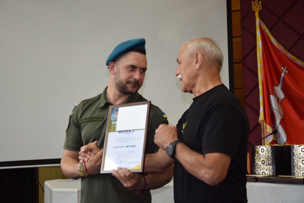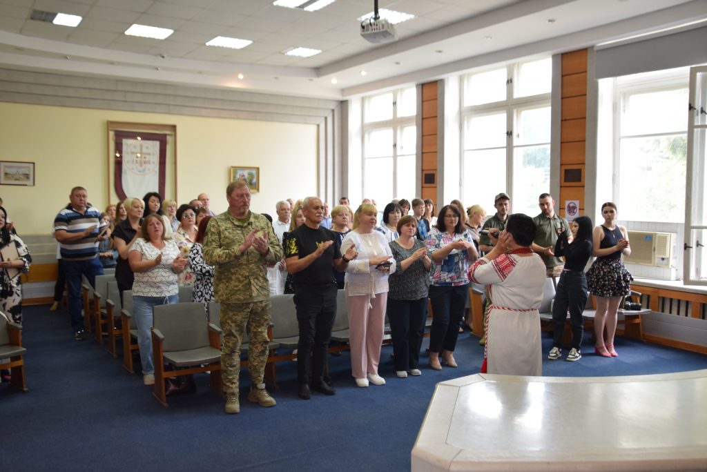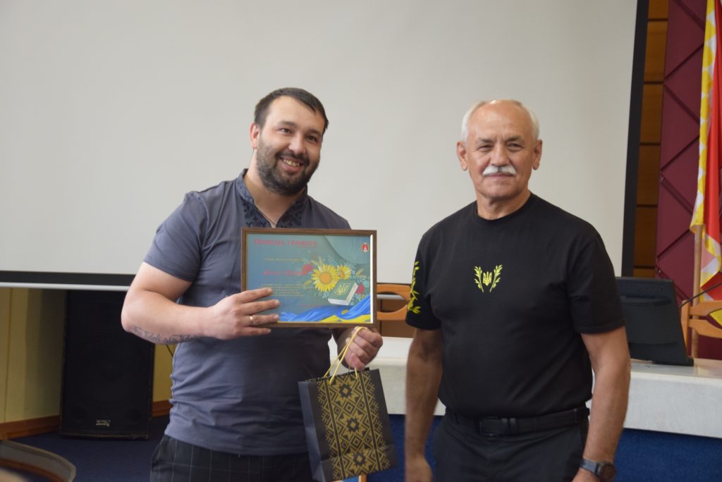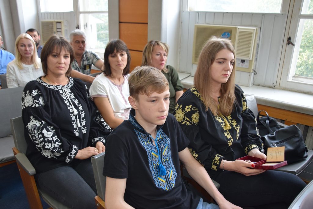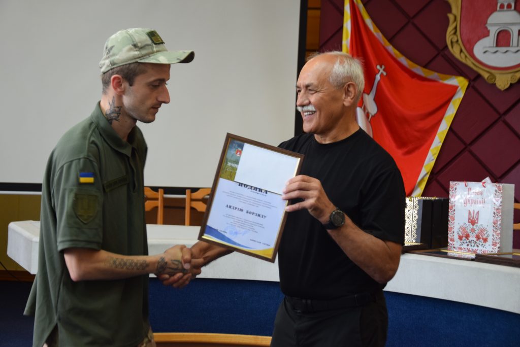 «Пам’ятаючи тих, хто віддав життя, ми не можемо не схилити голову й перед тими, хто нині продовжує боротьбу. Хто щодня тримає стрій. Хто, попри втому і біль, залишається живим щитом для України. Сьогодні ми маємо честь подякувати одному з них. Захиснику, який гідно несе службу й втілює все, про що говорить паша Конституція: сміливість, вірність, відповідальність. Відповідно Указу Президента України № 633 від 16.09.2024 орденом «За мужність» III ступеня нагороджується старший лейтенант військової частини А 4951 ПРОЗОР Андрій Володимирович» – продовжила ведуча. Нагороду вже по завершенні урочистостей отримала мама Героя – Прозор Оксана Володимирівна.
