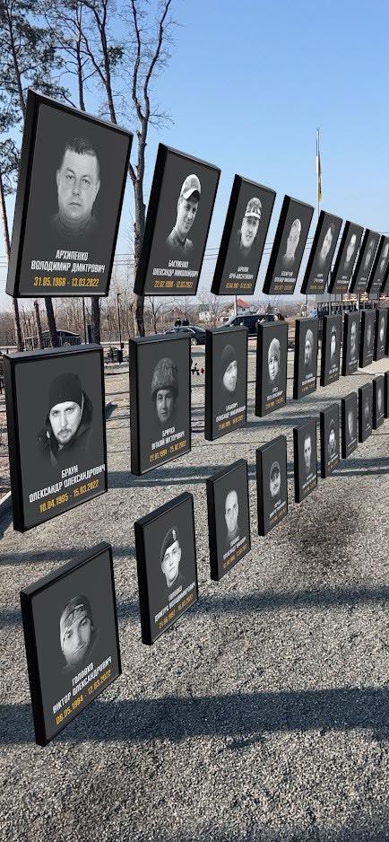 металевої півколової конструкції. Вона символізує захист, згуртованість та єдність. На двосторонніх двомовних дошках розміщені імена та фотографії загиблих Захисників та Захисниць. Ідея проста і водночас сильна: кожен загиблий— це частина великої спільноти незламних, частина нашої історії. Використання металу для конструкції уособлює силу, довговічність та незламний характер українських воїнів.