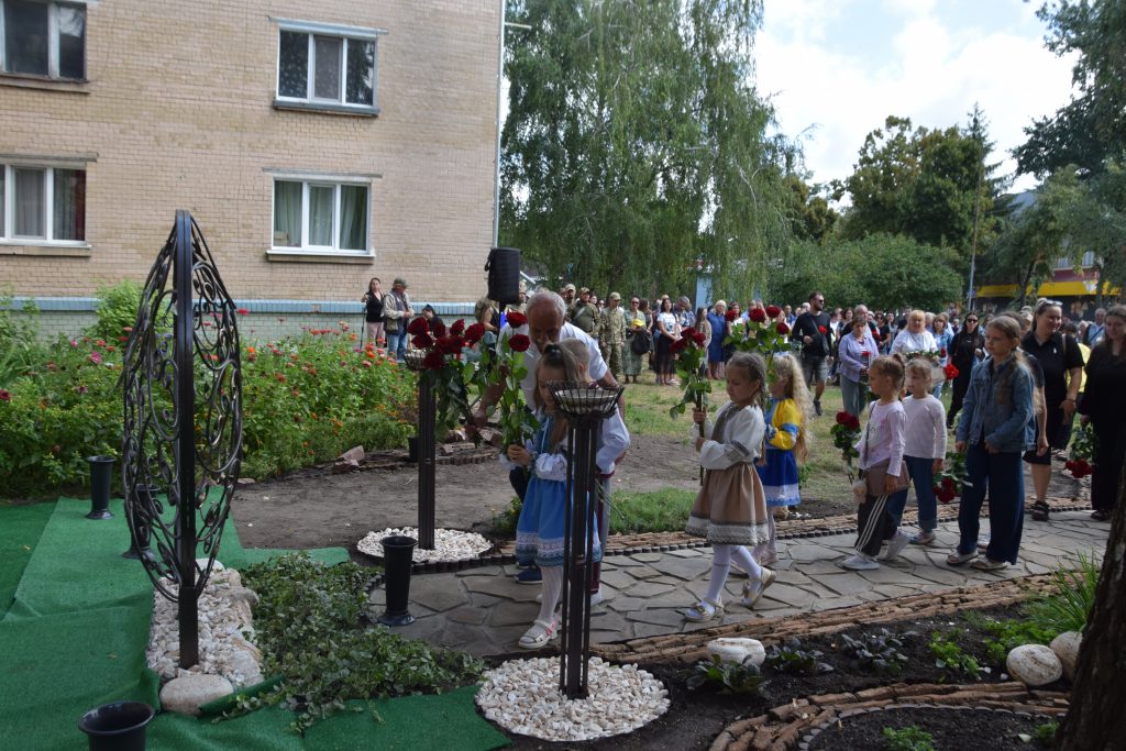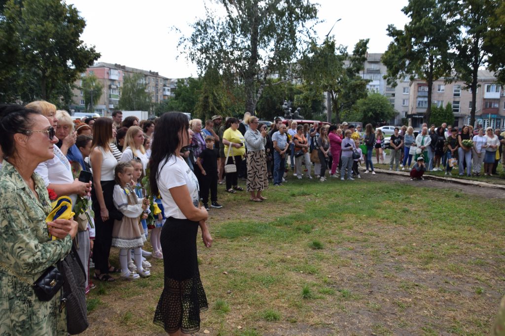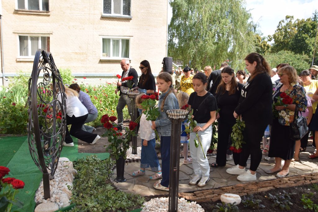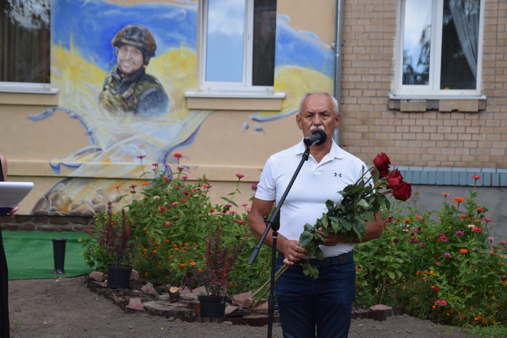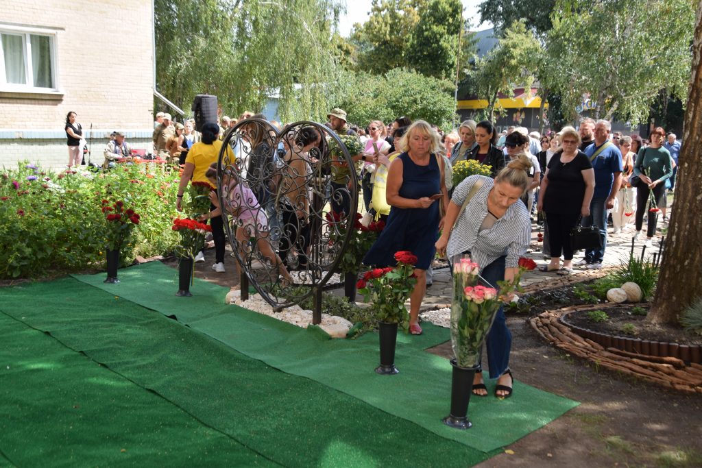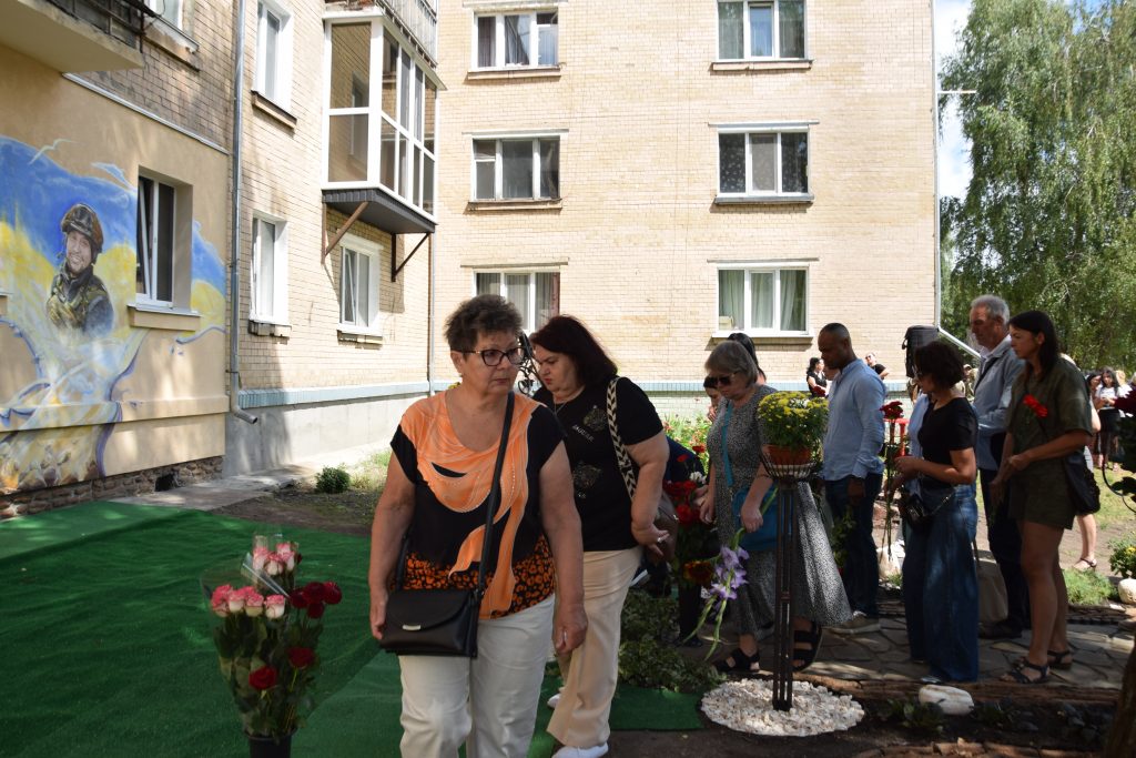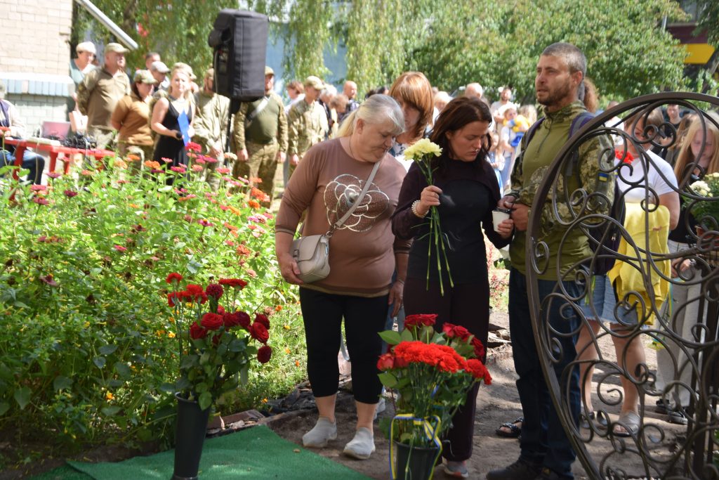 Сьогодні кожне наше слово, кожен погляд і кожен подих наповнені вдячністю. Вдячністю за життя, яке прожив Дмитро, і за подвиг, який він звершив. Він назавжди залишився серед нас — у муралі, що сьогодні відкрили, у спогадах, які ми бережемо, у серцях, які він зігрів своєю добротою. Живі квіти від рідних, знайомих і незнайомих лягли до муралу і стали іще одним нашим «дякую» — за його мужність, за світло, яке він приніс у цей світ, і мир, за який він віддав життя і який неодмінно настане.