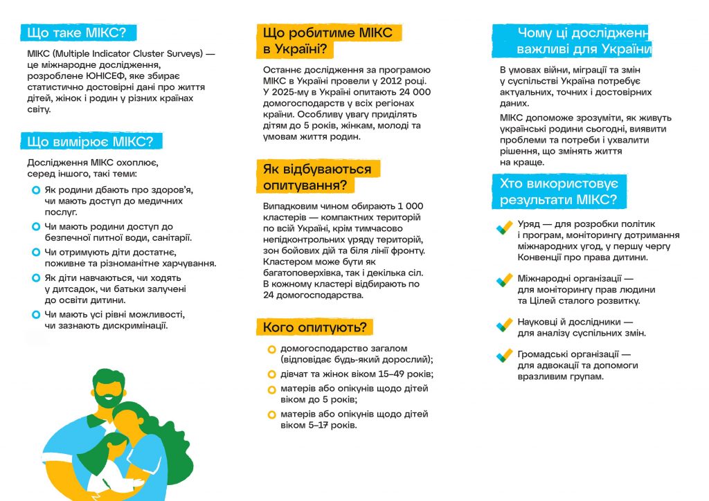 Далі проводять опитування цих домогосподарств за допомогою стандартизованих анкет. Всього в МІКС 2025 передбачено 4 анкети:
