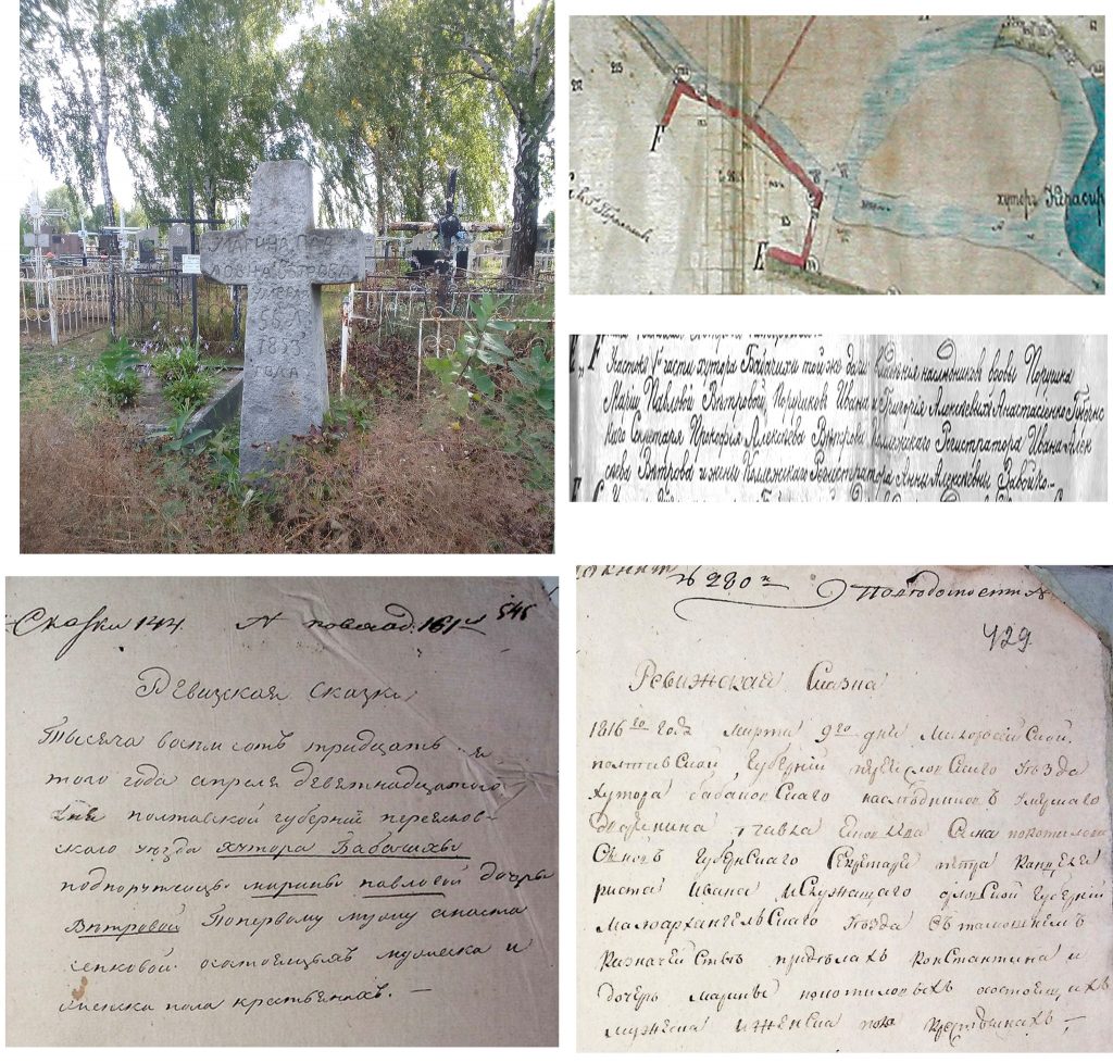 Згідно з архівними даними, ділянка ґрунту, на якій нині розташований цвинтар, на початку ХІХ століття належала порутчиці Марині Павлівні Ветровій — уродженій Покотиловій, у першому шлюбі Аннєнковій, у другому — Вєтровій (на межовому плані 1864 року її помилково названо Марією). Вона померла у 1853 році у віці 56 років, про що свідчить кам’яний хрест, що зберігся донині. Після її смерті ділянкою володіли її сини — Аннєнкови, Вєтрови — та дочка Анна Завойко. У квітні 1870 року тут був похований її син Прокіп Олексійович Вєтр, якому було 32 роки. До 1970 року ці два хрести залишалися самотніми, поки до них не «підселилися» останки пращурів переселенців — зі старовинних кладовищ, що потонули у водах Дніпра.