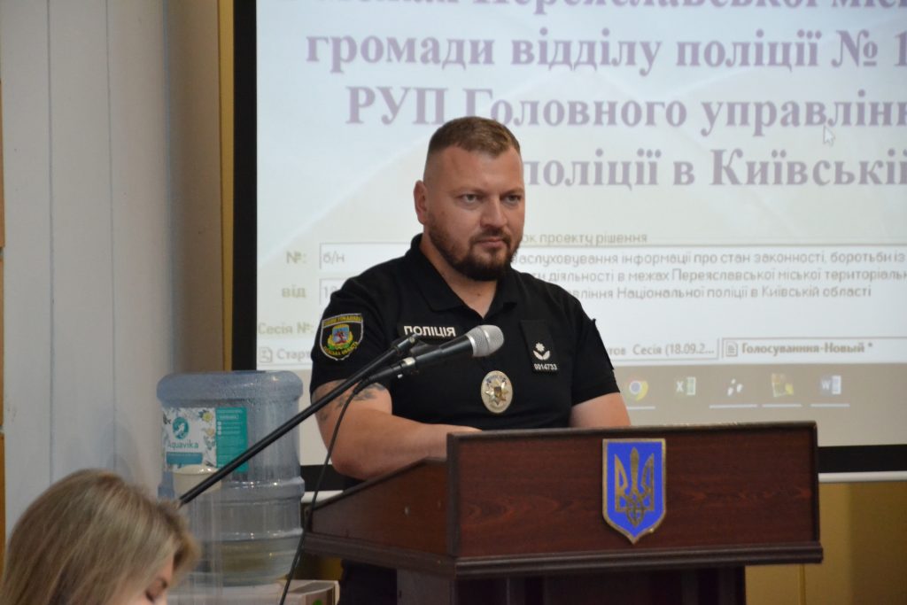 На початку сесії Переяславської міської ради 18 вересня перед депутатами виступив заступник начальника відділу поліції №1 Бориспільського районного управління поліції майор Денис Свириденко. Він розповів про стан злочинності, охорону громадського порядку та результати роботи правоохоронців упродовж восьми місяців 2025 року.