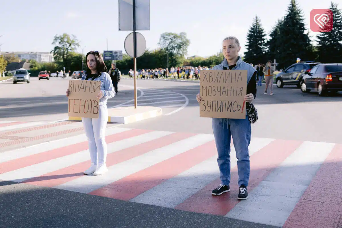 О 9:00 учасники акції вийшли на проїжджу частину аби зупинити рух автівок і гідно провести загальнонаціональну хвилину мовчання. Усі завмерли, згадуючи своїх рідних, друзів, знайомих. Кожен думками був із тими, за кого прийшов молитися та сподіватися.