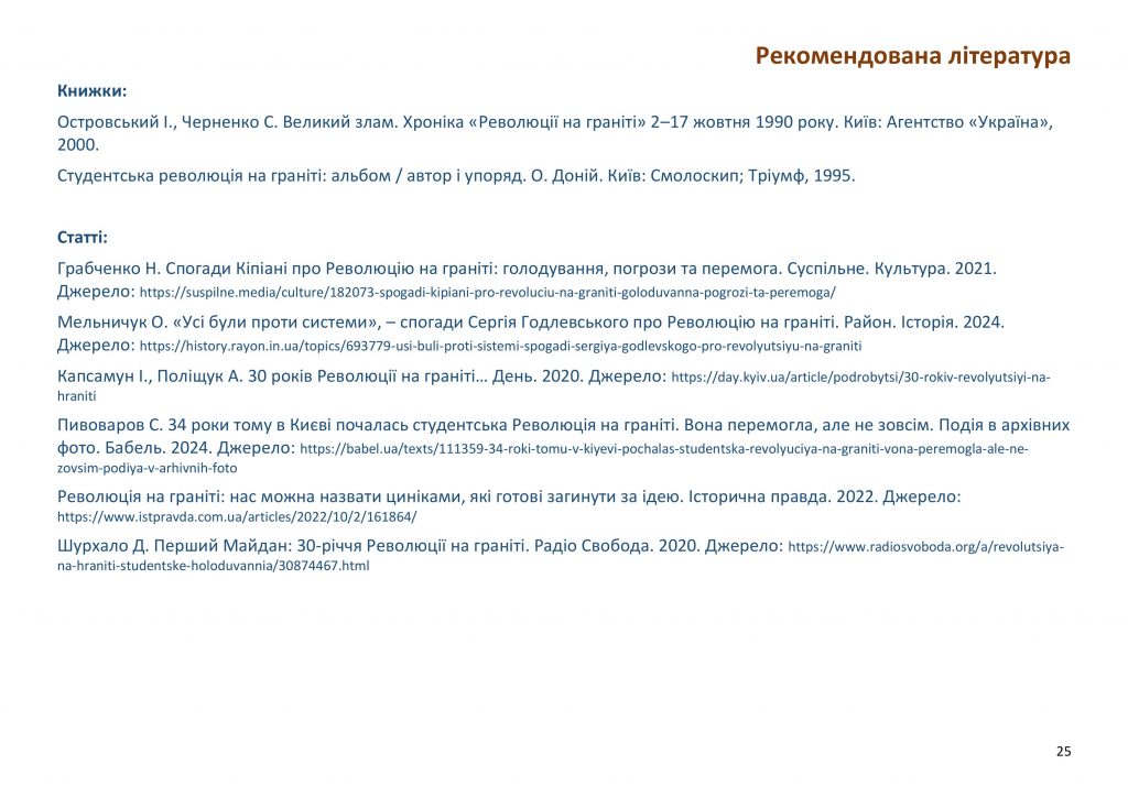 З нагоди ювілею Український інститут національної пам’яті разом із Національним меморіальним комплексом Героїв Небесної Сотні – Музеєм Революції Гідності випустили стислий посібник, де описано перебіг тодішніх подій і роль Революції на граніті в українській історії сьогодення.