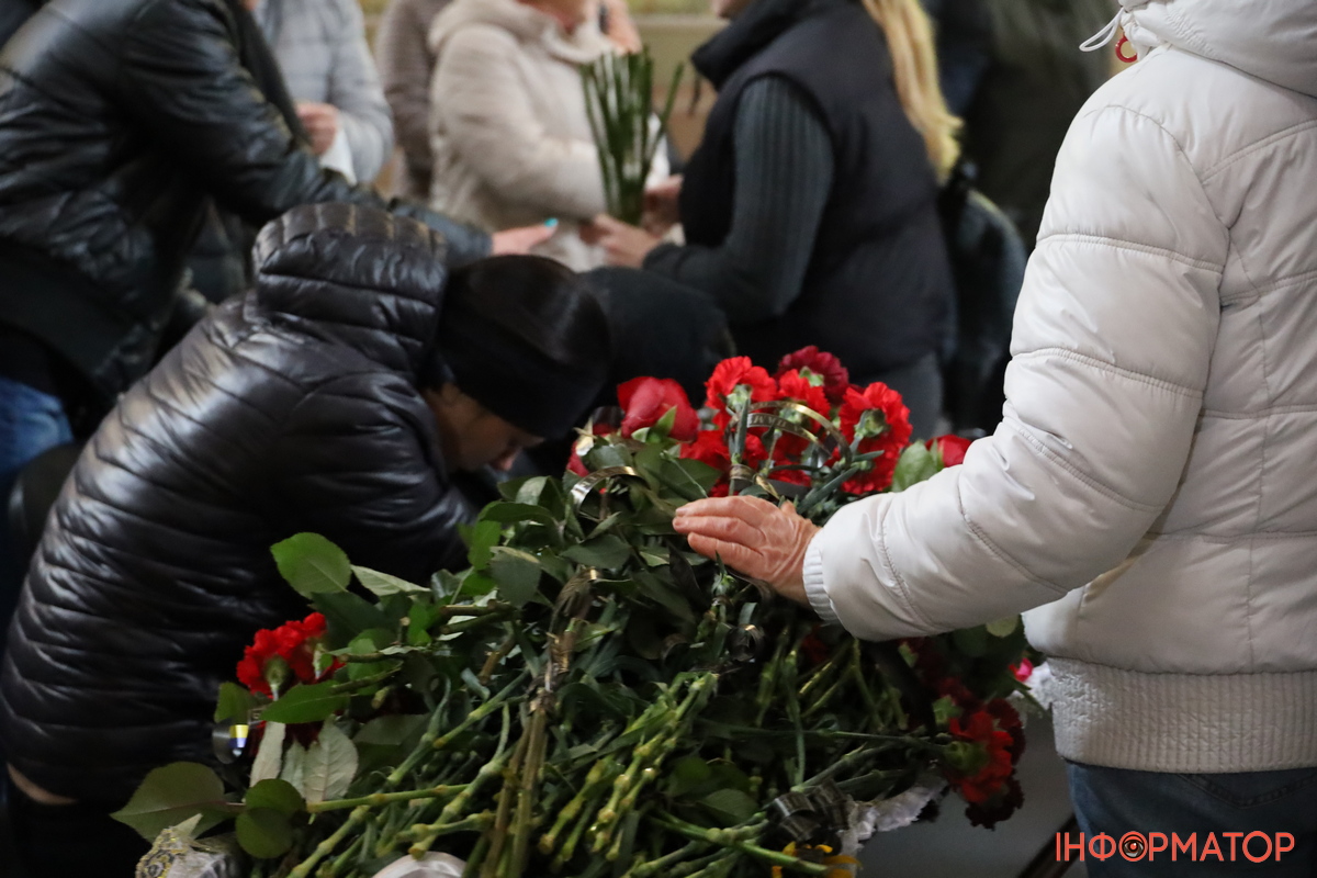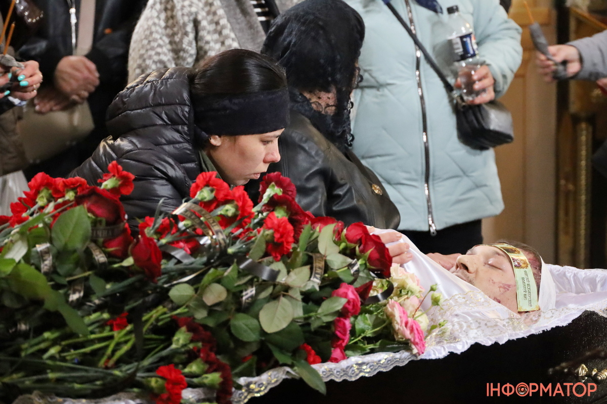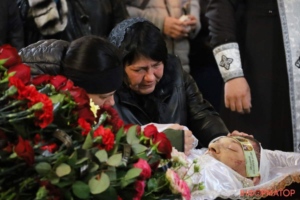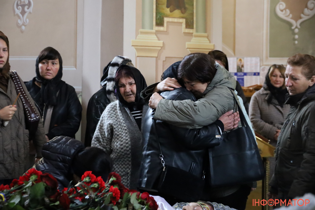 У приміщенні всі стали з обох боків лави на якій в центрі розмістили труну. Найрідніші сиділи поруч свого захисника. Зі словами співчуття та обіймами люди підходили до родини. Клали квіти та вклонялися. Кохана постійно тримала за руку та гладила свого чоловіка. Поряд тихенько схлипувала його мама. У Вадима також залишився маленький син.