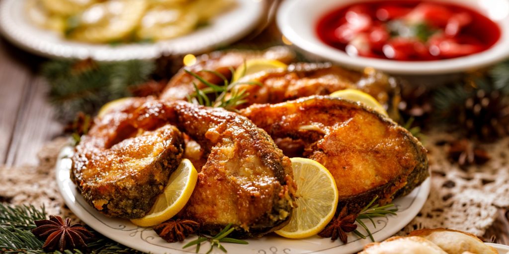 Зверніть увагу, що короп досить кістлява риба, тому приготуйтеся попрацювати. Готові шматочки риби потрібно замаринувати для кращого смаку в простій суміші лимонного соку, чорного перцю та солі, а далі приготувати панірування. Пані Наталія пропонує поєднати кукурудзяну крупу дрібного помелу та борошно, щоб отримати щільне та текстурне покриття.