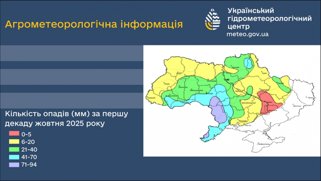 Зазначається, що максимальна кількість опадів першої декади жовтня була перевищена: