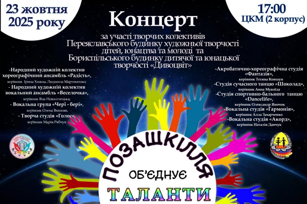 Запрошуємо на концерт за участі творчих колективів Переяславського БХТДЮМ та Бориспільського БДЮТ “Дивоцвіт” 22.10.2025 by Адмін in Новини · 0 Коментарів