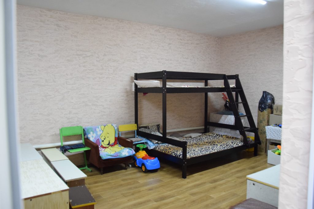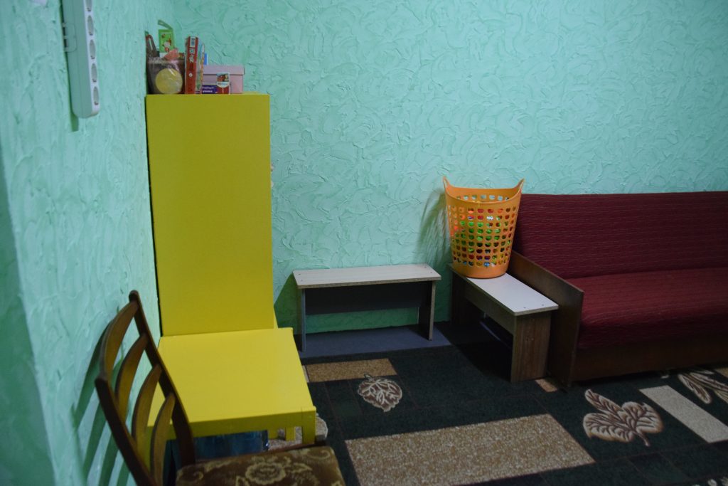 До ремонту кімната виглядала майже так само, як інші приміщення укриття — без яскравих деталей і дитячої атмосфери. Тепер же — це затишна зона з теплими кольорами, новими меблями, м’яким освітленням і безпечними ігровими куточками. Усе продумано так, щоб малеча почувалася спокійно навіть у складні моменти.