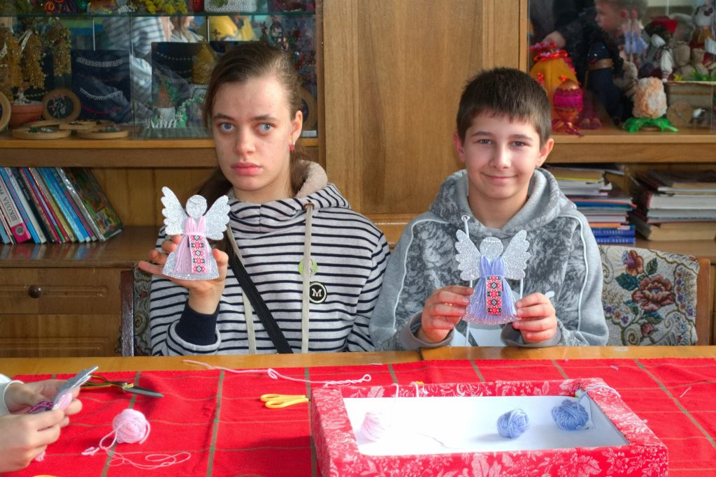 Під час творчих майстерок, проведених педагогами, юні гості виготовляли янголят-охоронців українських дітей (модератор Ірина Омельяненко), декорували сумку-шопер у техніці «вибійка» (модератор Марія Репа-Неженець), створювали журавликів із сіна (модератор Тетяна Буторіна).