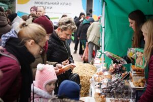 Поруч зі сценою працював ярмарок, де кожен район Київщини представив свої аграрні підприємства, продукти та ветеранські бізнеси. Учасники — від фермерських господарств до виробників харчової продукції, напоїв, ремісничих товарів — демонстрували свій потенціал. Кияни із захопленням знайомилися з тим, що створюють громади, і багато хто зізнавався, що вперше побачив настільки широкий спектр виробництва у Київській області.