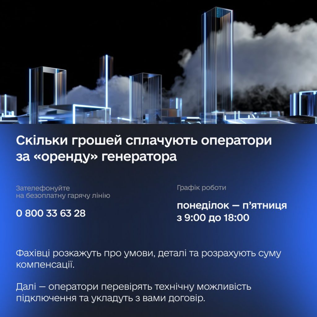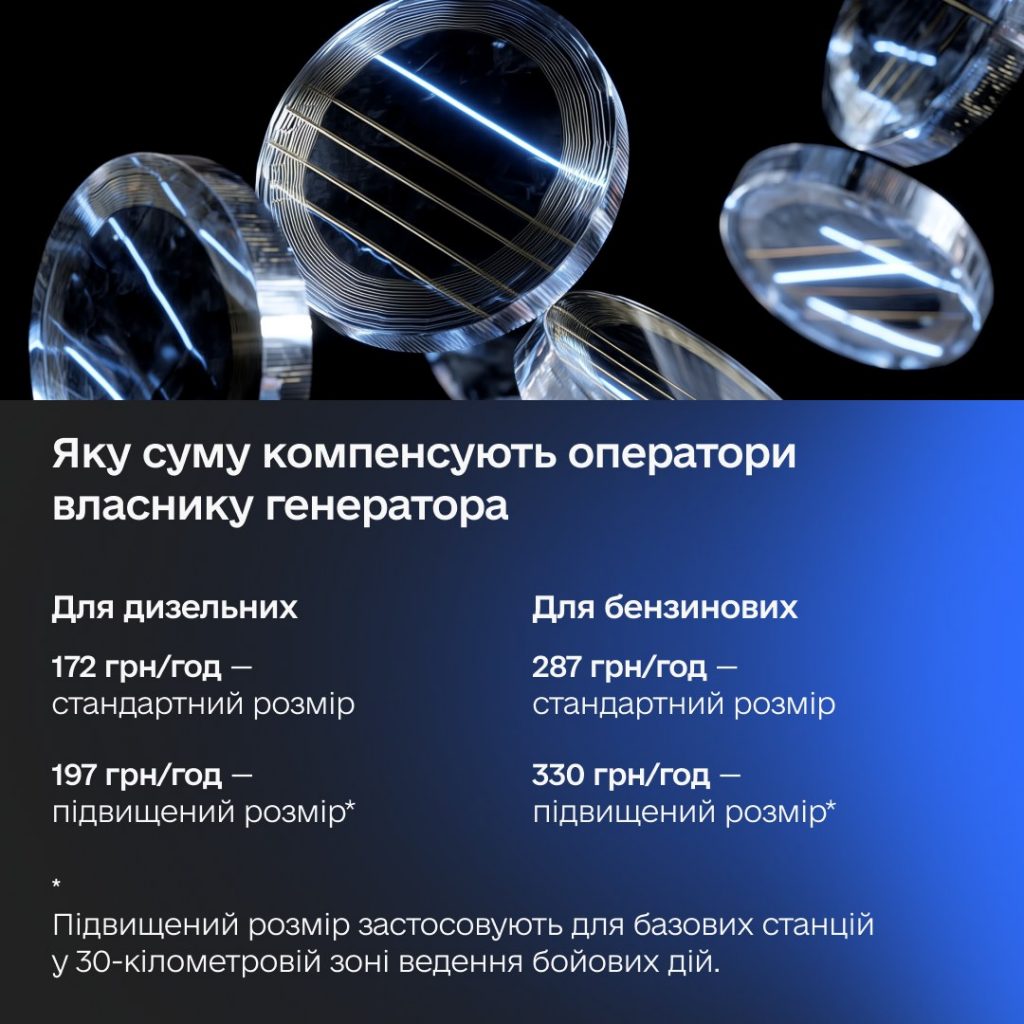 Мобільні оператори підвищили суму компенсації витрат за годину роботи генератора. А ще — тепер для дизельних та бензинових буде різний розмір компенсації.