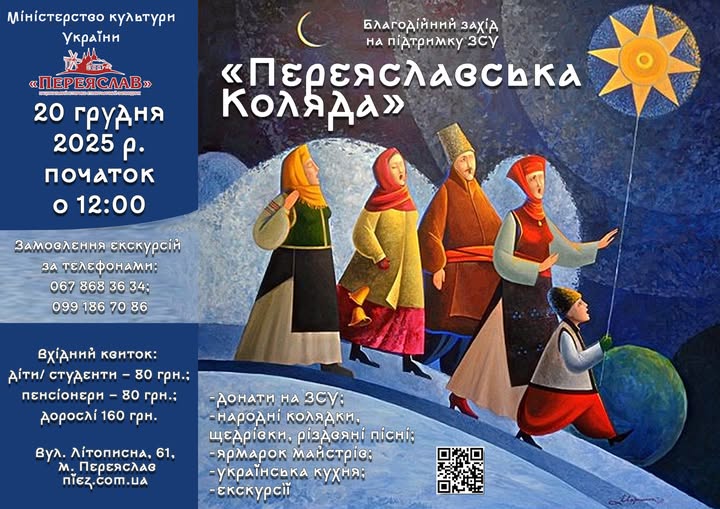 Об 11:30 на гостей Музею народної архітектури та побуту Середньої Наддніпрянщини чекає урочиста різдвяна хода звіздарів і вертепів з колядками.