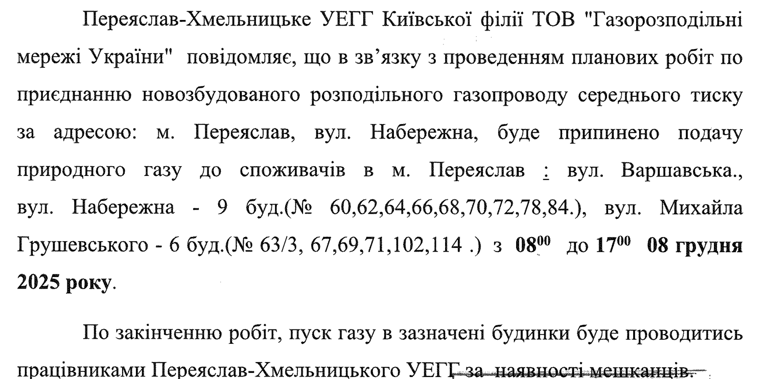 8 грудня на деяких вулицях міста буде припинено подачу природного газу 03.12.2025 by Адмін in Новини · 0 Коментарів