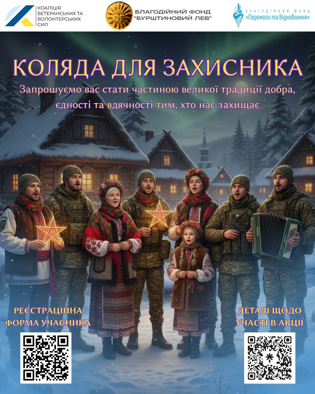Вдруге стартує Всеукраїнська різдвяна акція «Коляда для захисника», яку проводять Коаліція ветеранських та волонтерських сил України та благодійні фонди «Перемоги та Відновлення» і «Бурштиновий лев».