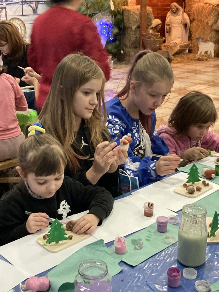 Особливо атмосферним став майстер-клас, на якому кожна дитина власноруч створила різдвяну зірку та новорічні прикраси — символи світла, радості та віри в чудо. Маленькі вироби, зроблені дитячими руками, стали не лише святковою окрасою, а й нагадуванням про те, що добро народжується в серці кожного.