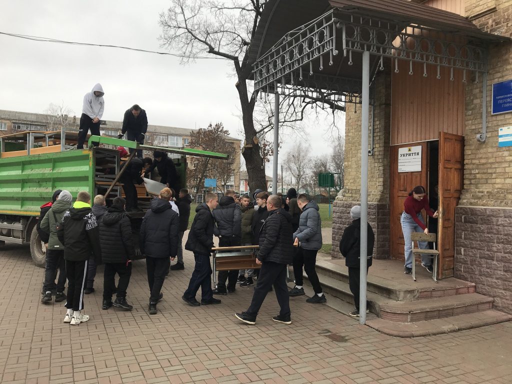 Напередодні різдвяних свят до Переяславської гімназії №1 прибув черговий гуманітарний вантаж із Швейцарії. Навчальний заклад отримав понад сотню одиниць шкільних меблів. Добротні парти та стільці з механізмами регулювання висоти та нахилу сподобались як учням так і керівництву гімназії. Старшокласники швидко перенесли меблі до класів.
