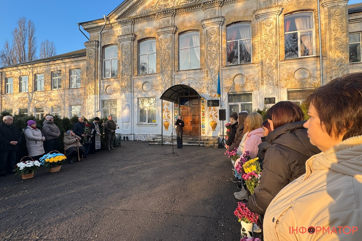 Після цього присутні поклали квіти до меморіальної дошки, низько вклонялися перед викарбуваним фото, віддаючи шану. Це вже друга дошка пам’яті захисників, загиблих у російсько-українській війні, на фасаді гімназії.