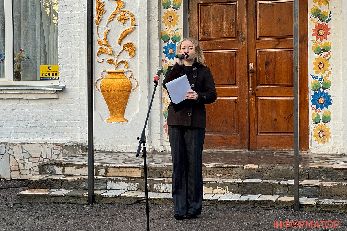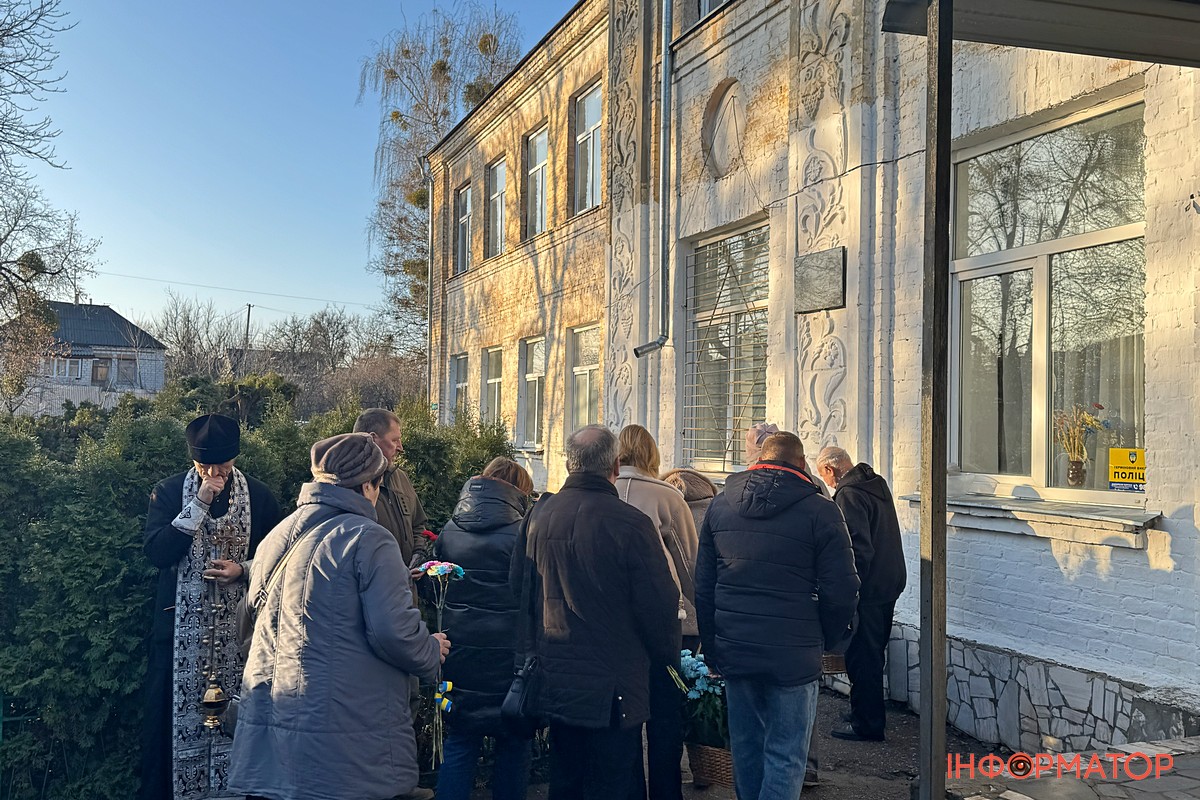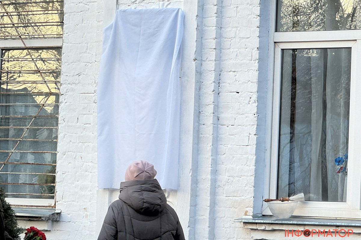 Відкрила меморіальну дошку дружина захисника Олена. Освятив її настоятель Володимирського храму ПЦУ Отець Іван Будняк.