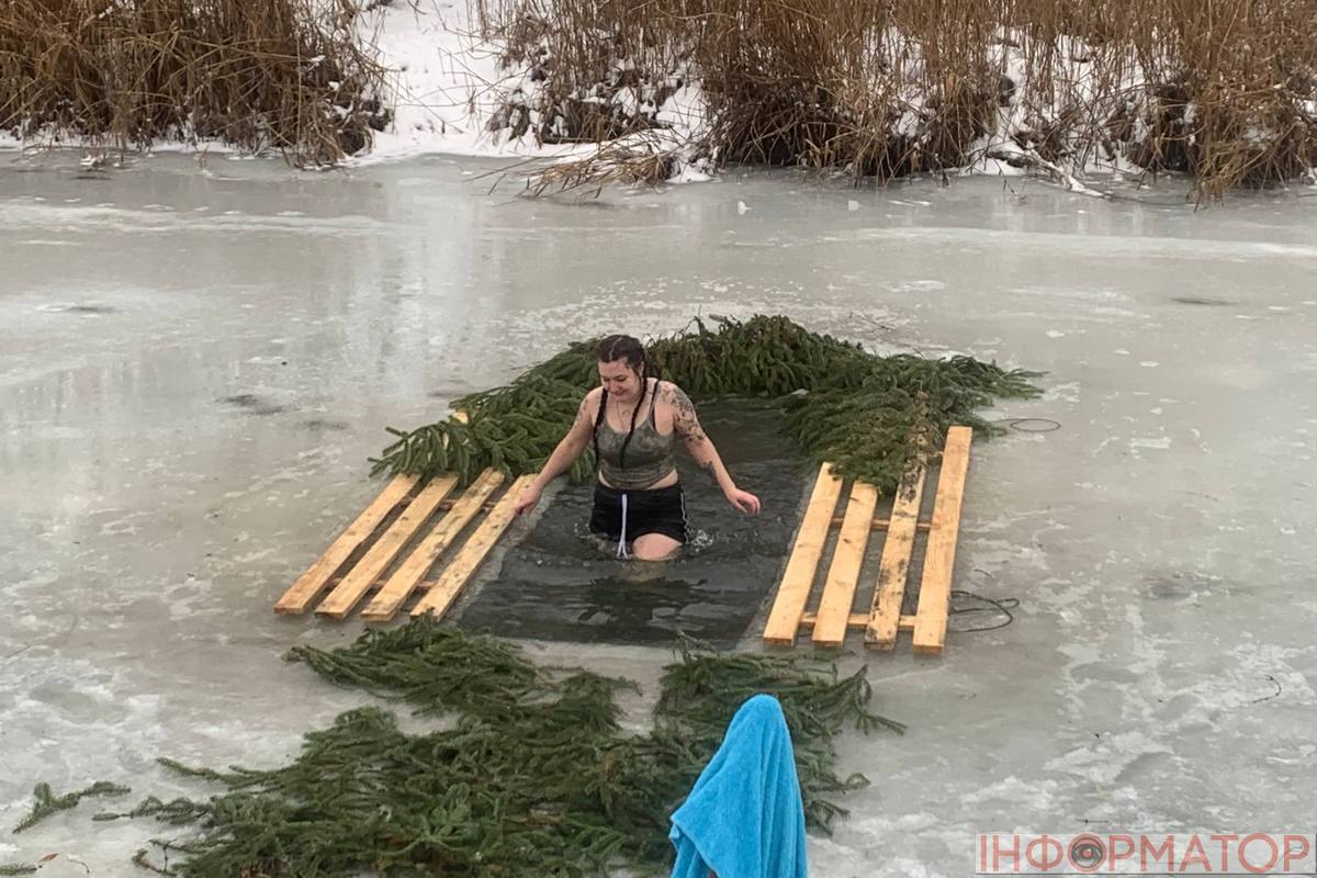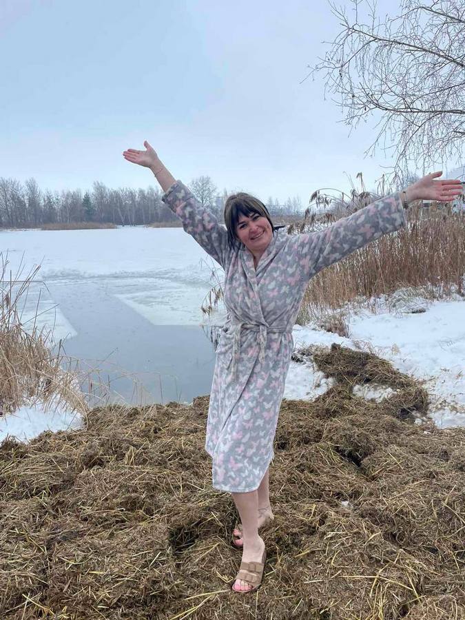 Для Жанни цьогорічне Водохреще стало ювілейним – рівно 10 років поспіль вона пірнає в ополонку. Разом із родиною жінка була серед перших, хто цього дня зайшов у воду біля “Любокраю”: “Ми кожен рік приїжджаємо саме сюди. Цього разу вода навіть тепліша, ніж торік, хоча погода не дуже. Коли вже пірнув і стоїш надворі, не трусить, навпаки, стає дуже кайфово”.