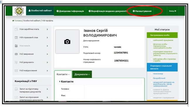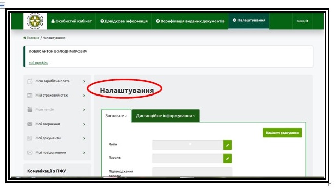2. За допомогою електронного цифрового підпису увійти до особистого кабінету на веб-порталі електронних послуг Пенсійного фонду України, далі: