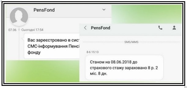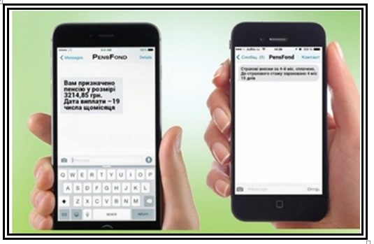 Відтепер всі пенсіонери, які бажають отримувати повідомлення в такий спосіб, можуть засобами мобільного зв’язку дізнатися про тривалість свого страхового стажу, суму призначеної пенсії та дату її виплати, результати проведеного перерахунку пенсії, поновлення пенсійної виплати та строк припинення виплати пенсії. Застраховані особи – довідатись про сплату роботодавцем єдиного соціального внеску та про зарахування цього періоду до страхового стажу.
