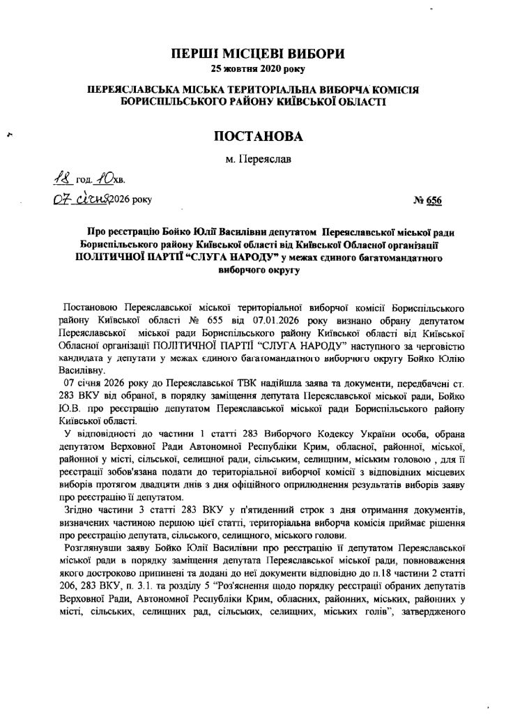 Постанови Переяславської міської територіальної виборчої комісії від 7 січня 2026 року 08.01.2026 by Адмін in Без категорії · 0 Коментарів