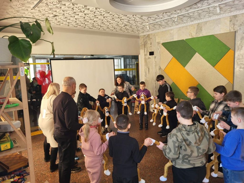 У межах проєкту відбулася перша зустріч – знайомство дітей з Хібукі- спеціальною іграшкою – собакою, яка є інструментом психологічної допомоги.