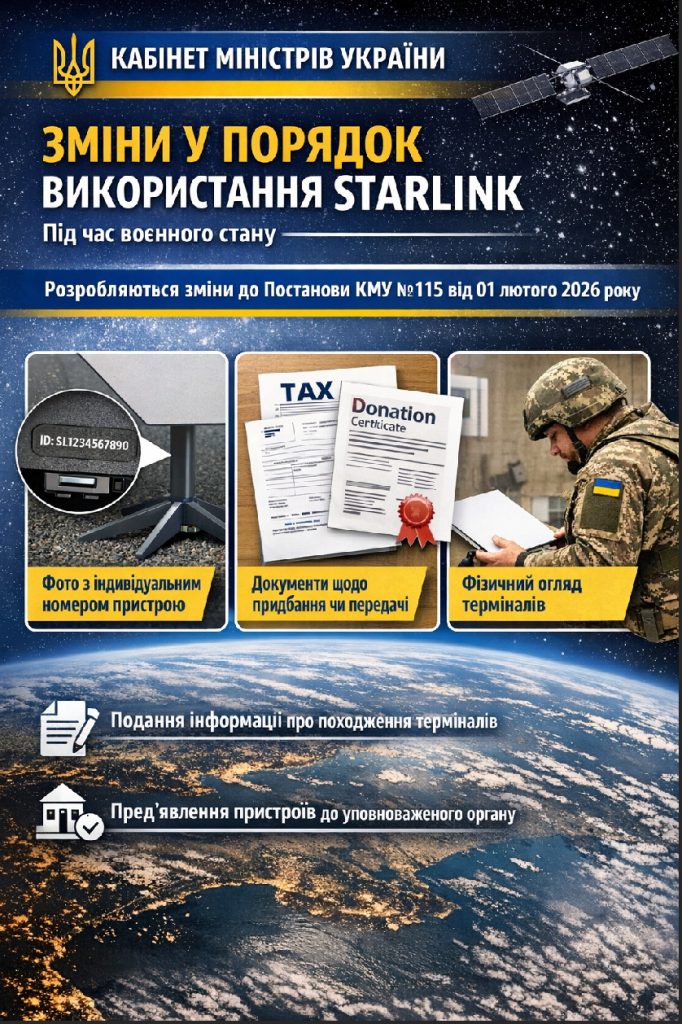 Йдеться про оновлення норм «Порядку формування та подання повідомлення про використання терміналів супутникового звʼязку Starlink під час воєнного стану», зокрема — щодо форми подання повідомлення юридичними особами.
