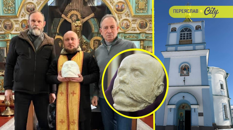 Копію маски Микола Томенко вже передав настоятелю храму отцю Софронію, і разом із науковцем НІЕЗ «Переяслав» Олександром Колибенком обговорили можливе місце її розміщення в храмі.