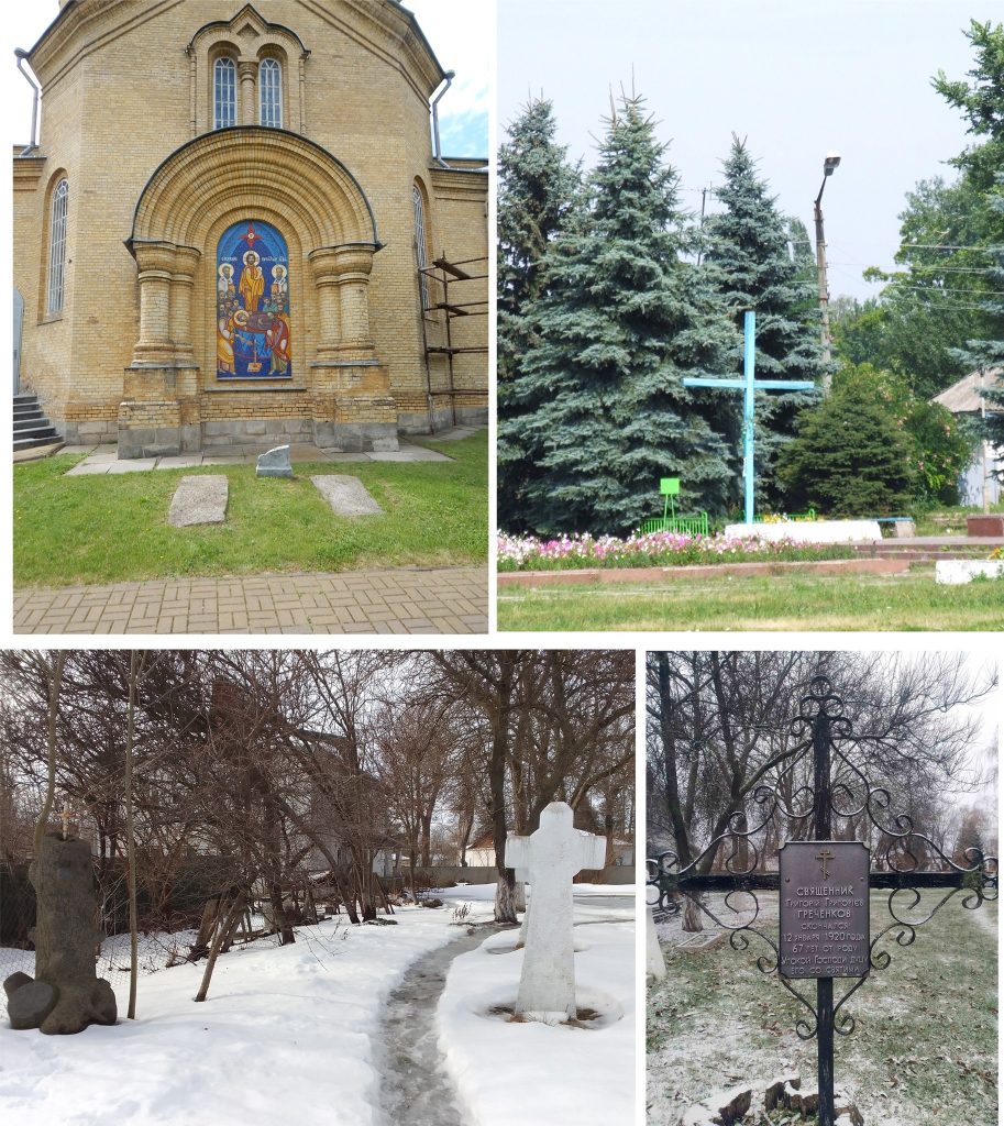 Водночас слід зауважити, що навколо трьох церков — Борисоглібської в мікрорайоні Борисівка, Троїцької та Успенської — деякі могили ще збережені й доглядаються паствою. Про поховання біля Борисоглібської церкви вже йшлося в попередньому дописі, а от інформація про захоронення біля Троїцької та Успенської заслуговують на оприлюднення серед широкого загалу. У південно-східному куті погосту Троїцької церкви збереглися кілька могил, проте лише дві з них атрибутовані надгробками: священика, настоятеля храму Григорія Греченка (1920 р.) та відставного полковника Дмитра Матвієнка (1891 р.). Ще на двох могилах стоять хрести, а декілька надгробків – безіменні. Але, згідно з метричними книгами, тут у 1877 р. був похований відставний генерал-майор Михайло Дмитрович Матвієнко, а в 1897 р. — купець Андрій Микитович Пономаренко. Найголовніше ж те, що на цьому цвинтарі ще 1883 р. знайшов вічний спокій колишній настоятель Троїцької церкви протоієрей Іоан Васильович Крамаренко — постійний автор Полтавських єпархіальних відомостей у середині ХІХ ст. Саме йому переяславські краєзнавці завдячують першими історичними описами всіх церков міста. Під час їх написання отець Іоан використовував архіви, що тоді зберігалися в кожній церкві. У 1887 р. на погості був похований настоятель цього ж храму, благочинний Переяславського повіту Іоан Трипольський — автор першого історико-статистичного опису Троїцького храму.
