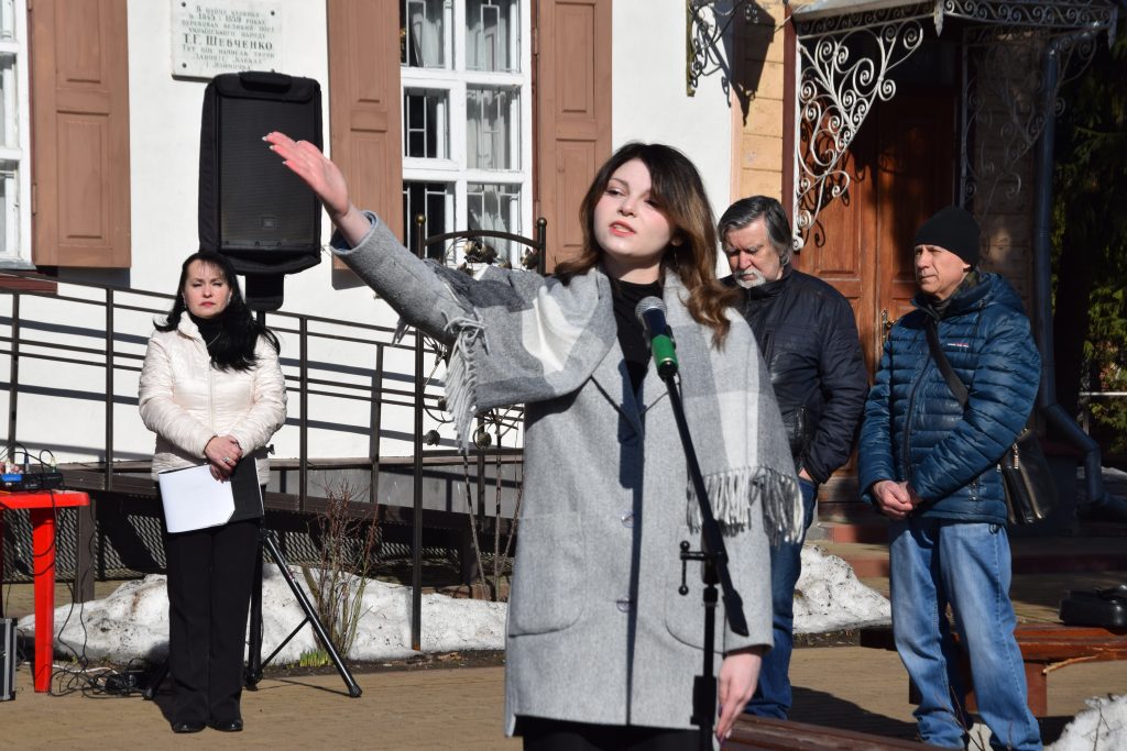 Особливою частиною заходу став виступ Анастасії Кравченко, вихованки студії конферансу «Акцент» Переяславського центру культури і мистецтв (керівник – Влада Черненко), яка проникливо прочитала рядки з поезії Кобзаря.