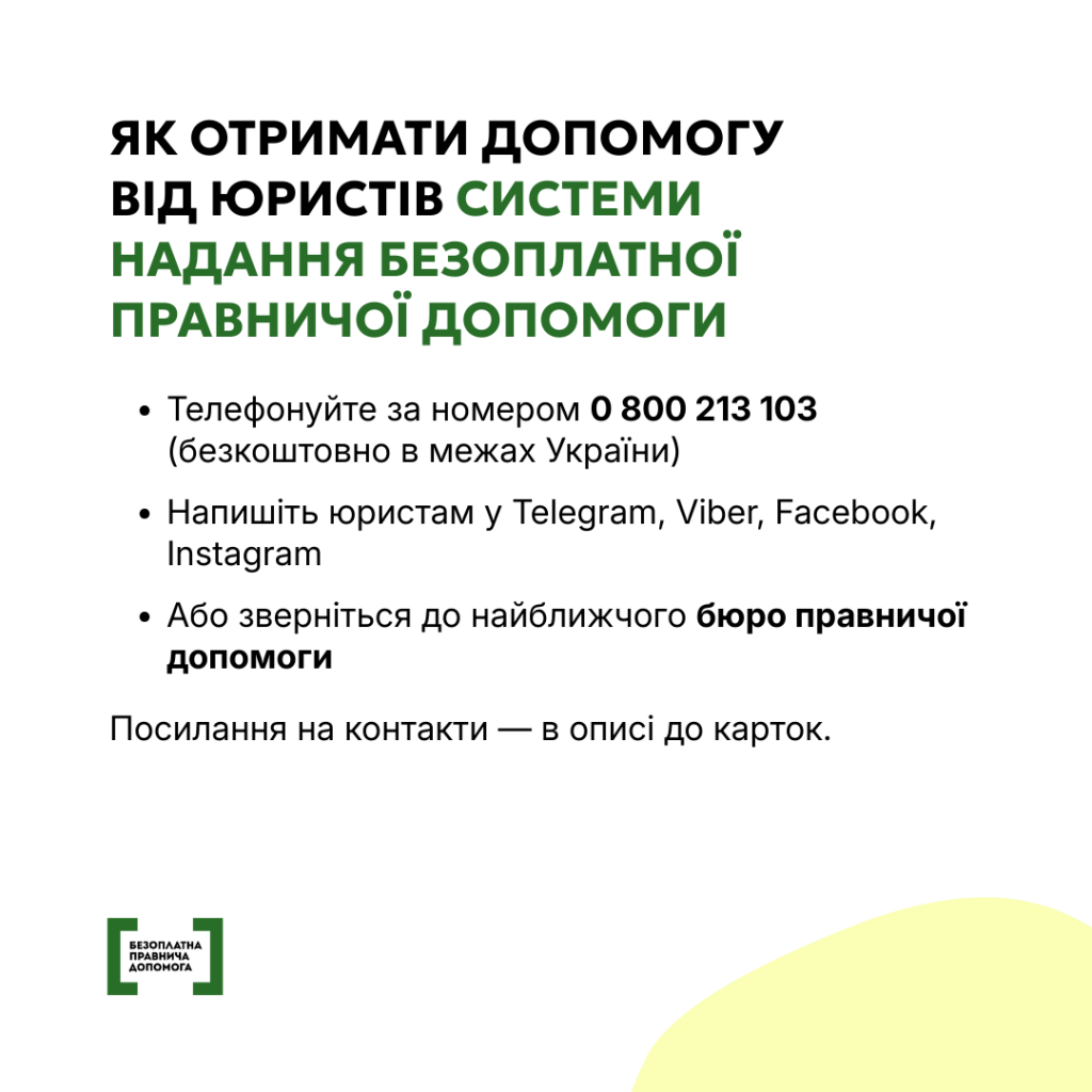 - у приватні повідомлення сторінці @Ukraine.Legal.Aid
