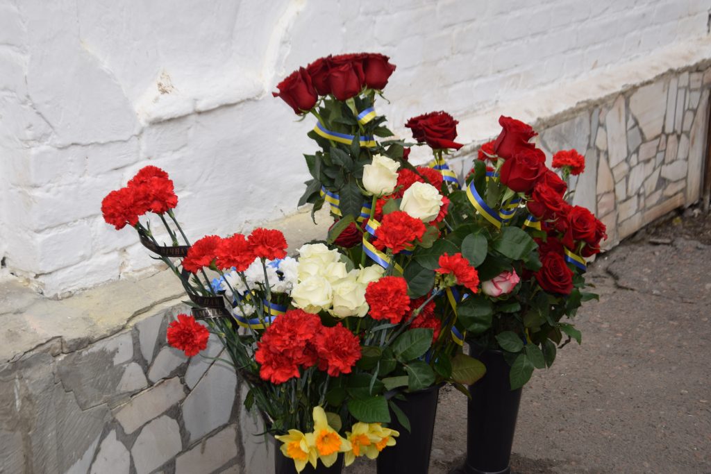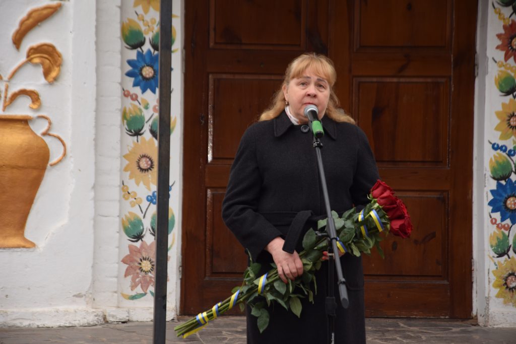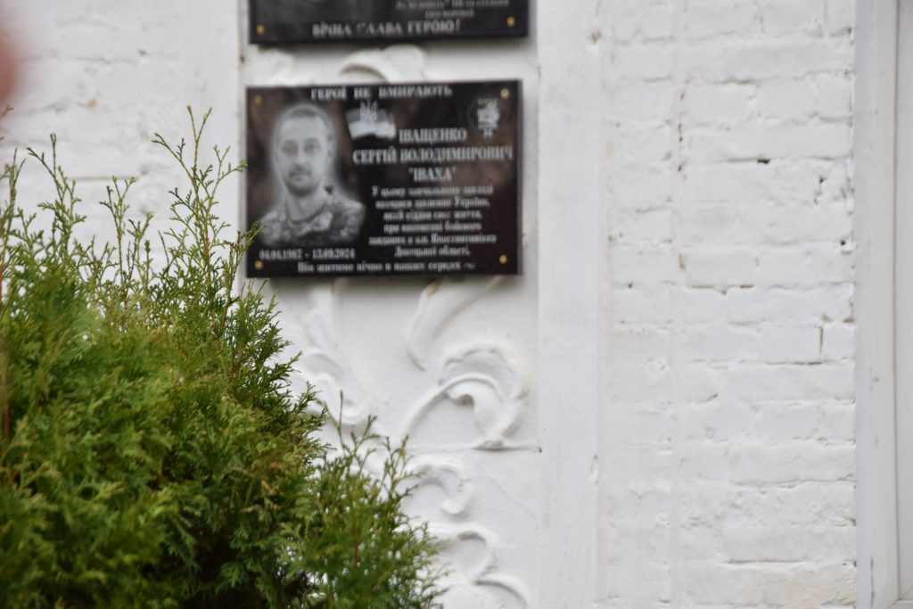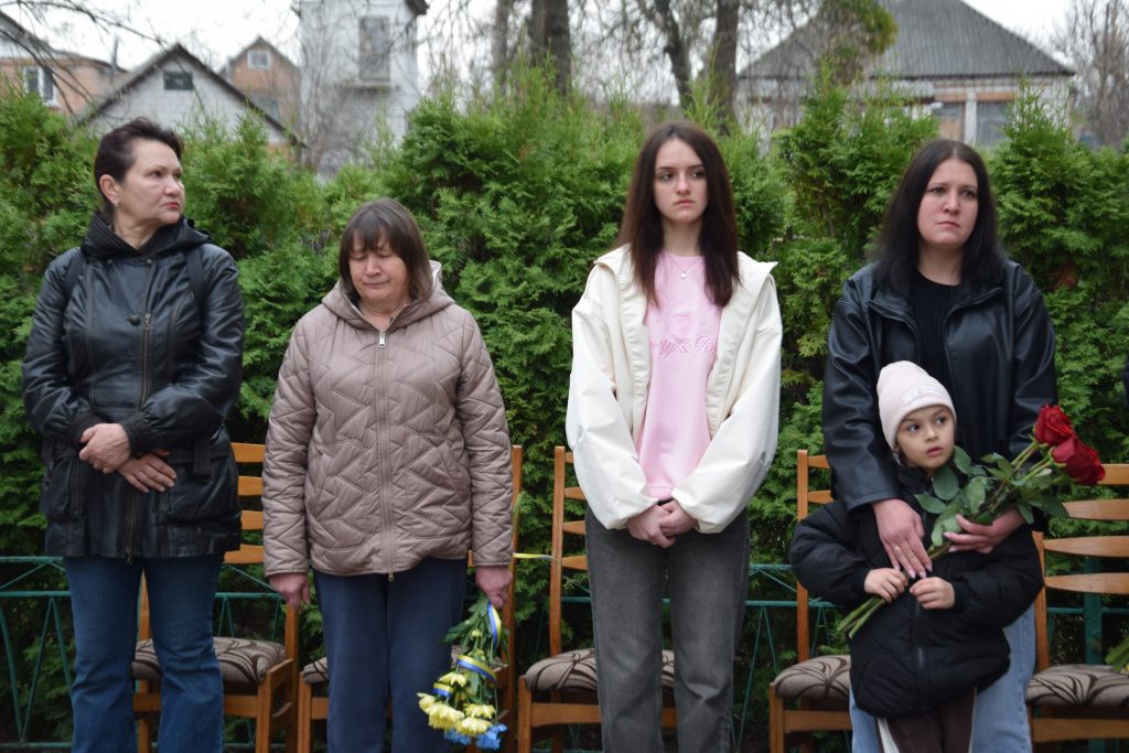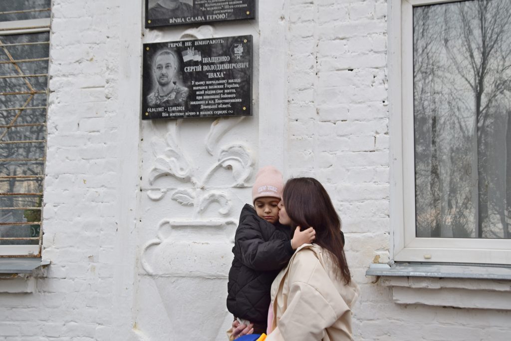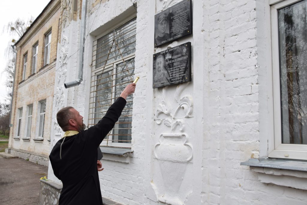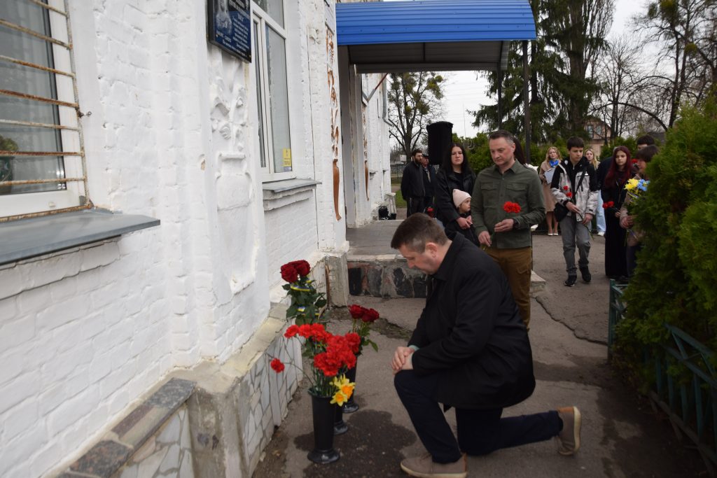 Військовий капелан освятив дошку, і слова молитви тихо розлилися над подвір’ям, мов оберіг. Люди стояли зі схиленими головами, а квіти, що лягали до підніжжя, ставали мовчазними свідками вдячності.