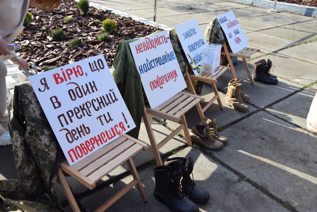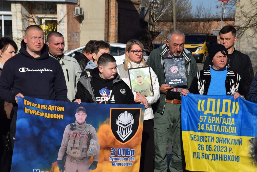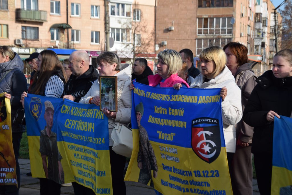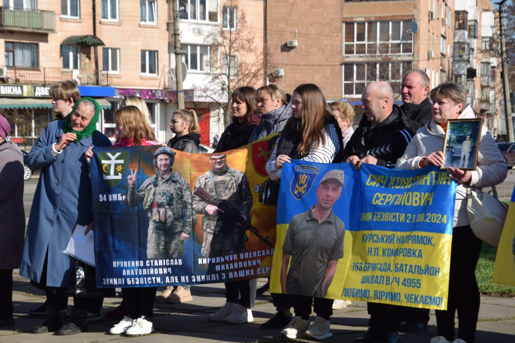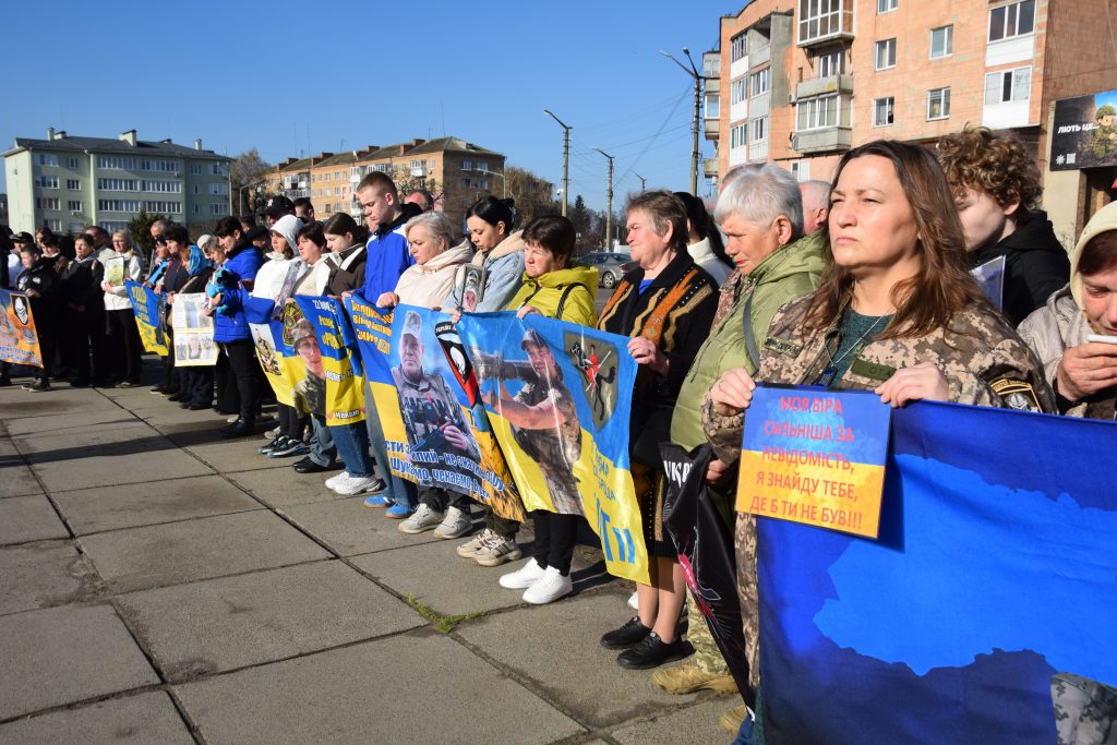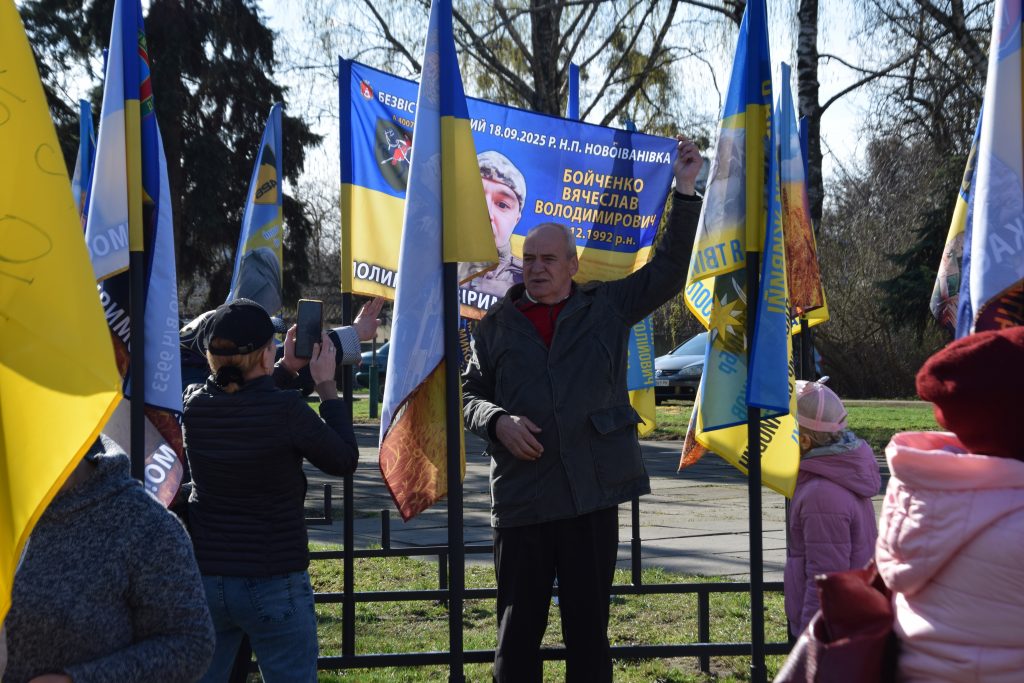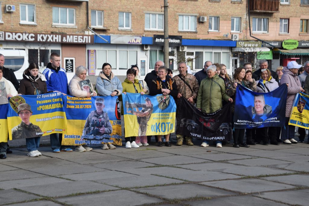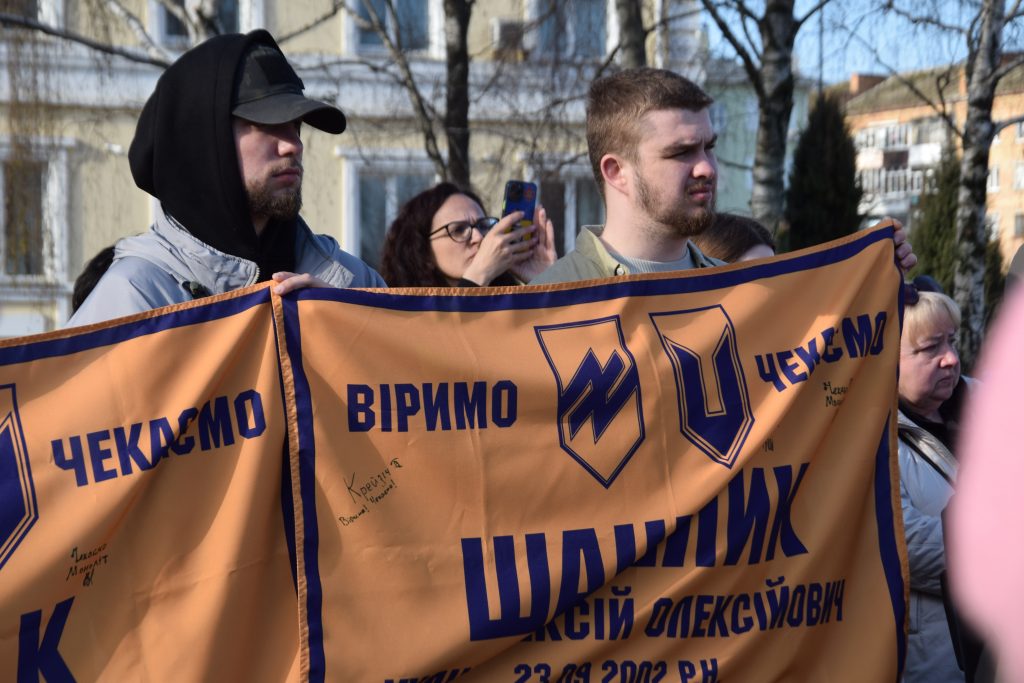 Того дня зібралося близько чотирьох сотень людей. Вони тримали синьо-жовті прапори, портрети, саморобні плакати. “Поверніть мені сина”. “Віримо. Чекаємо”. І в кожному слові — любов, яка не має меж.