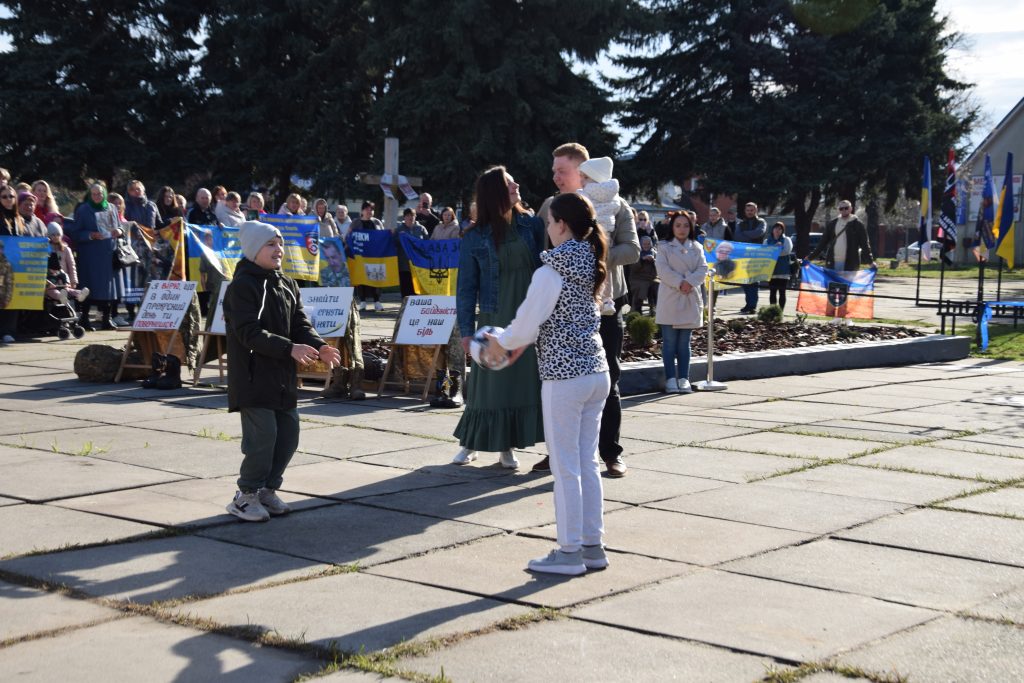 Цей мітинг мав ще одну благодійну мету – допомогти 10-класниці ліцею «Патріот» Вероніці Маляровій подолати важку хворобу. Дівчині діагностували гострий мієлоїдний лейкоз. Зараз вона проходить складне та тривале лікування. Кожен день — це боротьба за життя. Вартість лікування є дуже високою, і родина самостійно не може впоратися з фінансовим навантаженням.Тож, бажаючі могли долучитися до цієї боротьби, шляхом надання посильної матеріальної допомоги у скриньку, яка стояла на площі.