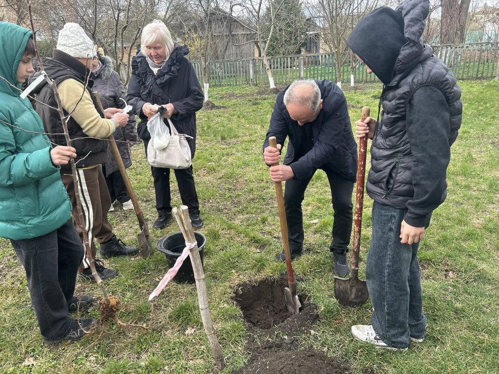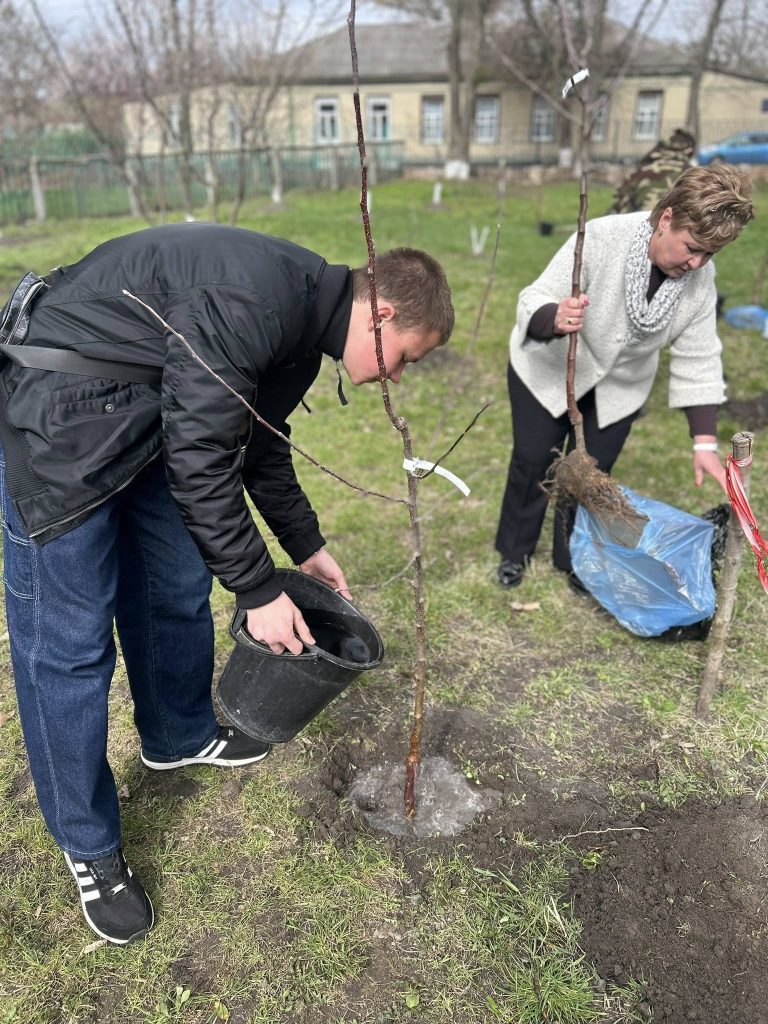 Разом з учасниками зібрання учні 8А класу посадили чотири фруктові дерева в Саду пам’яті. Перед початком роботи відбувся мітинг-реквієм, під час якого згадали трагічні сторінки історії, розповіли про долю остарбайтерів, їхню мужність, стійкість і віру в майбутнє. Учні усвідомили важливість збереження історичної пам’яті та поваги до людей, які пережили ті страшні часи.