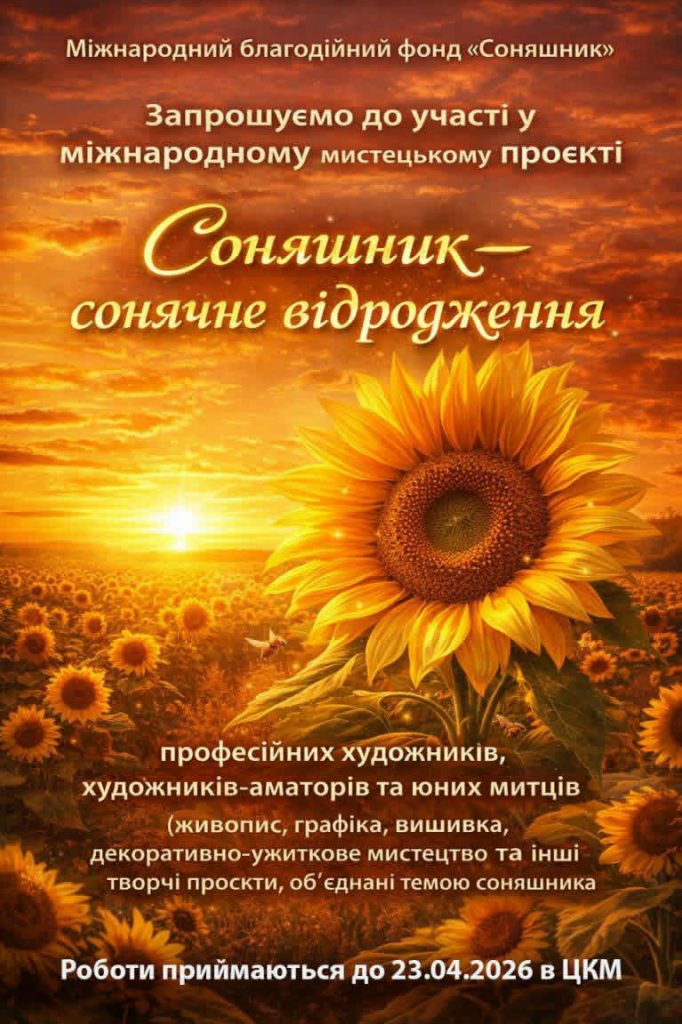 Професійних художників, аматорів та юних митців запрошуємо до участі в мистецькому проєкті “Соняшник” 14.04.2026 by Адмін in Без категорії · 0 Коментарів