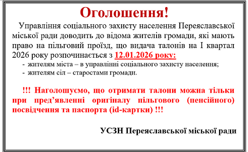 Шановні жителі та гості Переяславської громади! У зв’язку з ускладненням погодних умов на території громади прошу всіх поставитися до ситуації з розумінням та відповідальністю. Звертаюся до водіїв приватного транспорту з…